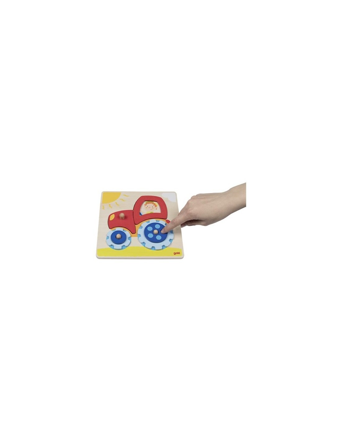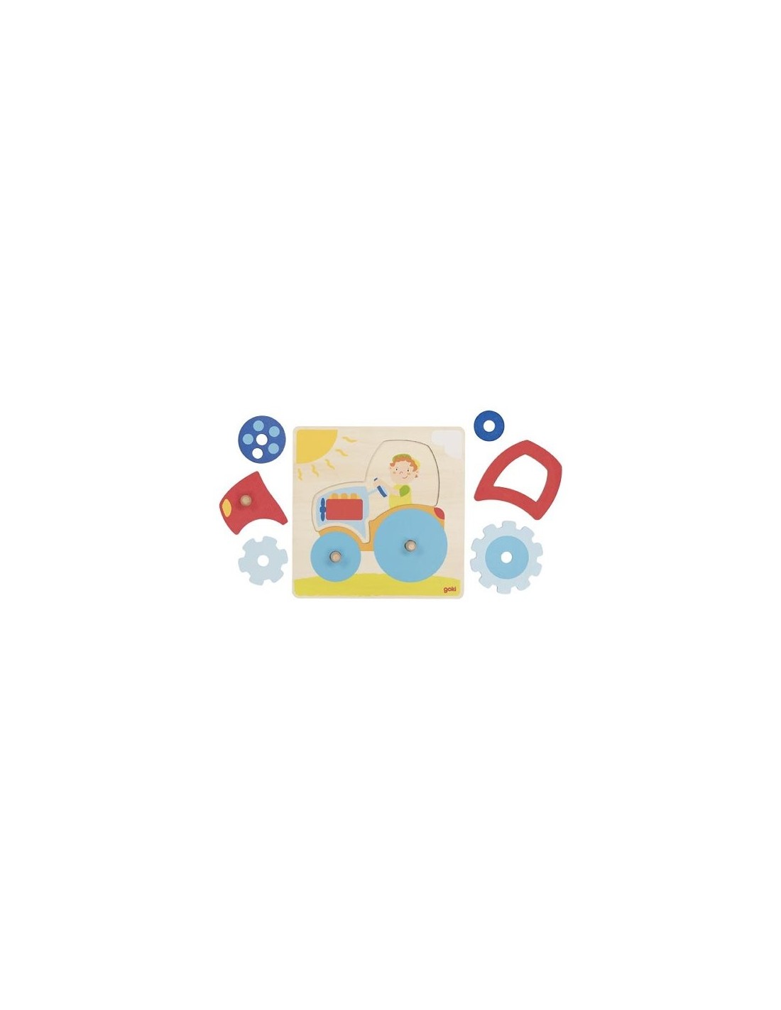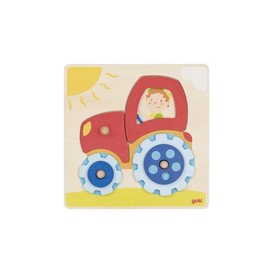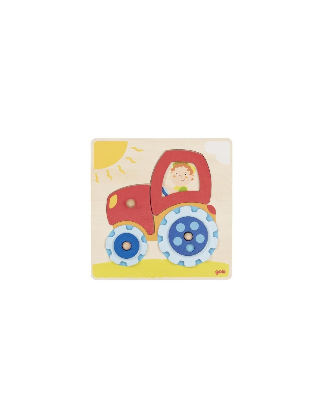 Un puzzle de madera con mucho amor por el detalle. Creado para la iniciación en el mundo de los puzzles. El tractor rojo lo tiene todo para ser un juguete preferido.