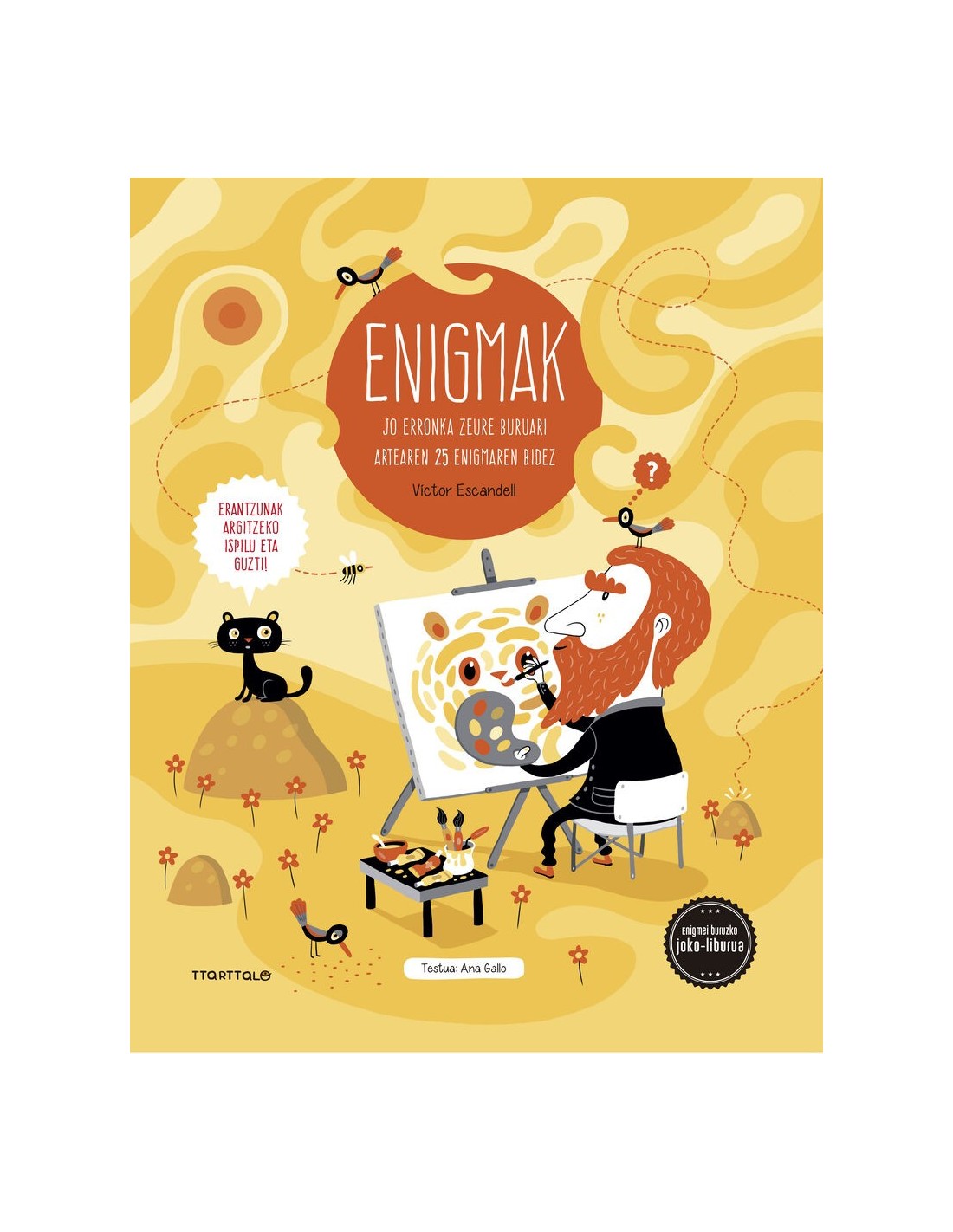 Izan nahi al duzu Artearen Historian espezializatutako detektibea? Liburu honetan 25 enigma dituzu zain, primeran pasatzeko garunak apurtu eta arte-sorkuntzaren munduan murgildu ahala.Gertaera, pertsonaia eta bitxikeria harrigarriak topatuko dituzu, labar-pinturetan hasi eta grafitietaraino eramango zaituen ibilbide batean zehar. Eta zuk ere zure lorratza utz dezazun Artearen Historian, zure obrak sortu ahal izango dituzu liburuaren azken ataleko jarduerak eginez eta zure autoerretratua ere marraztuz.