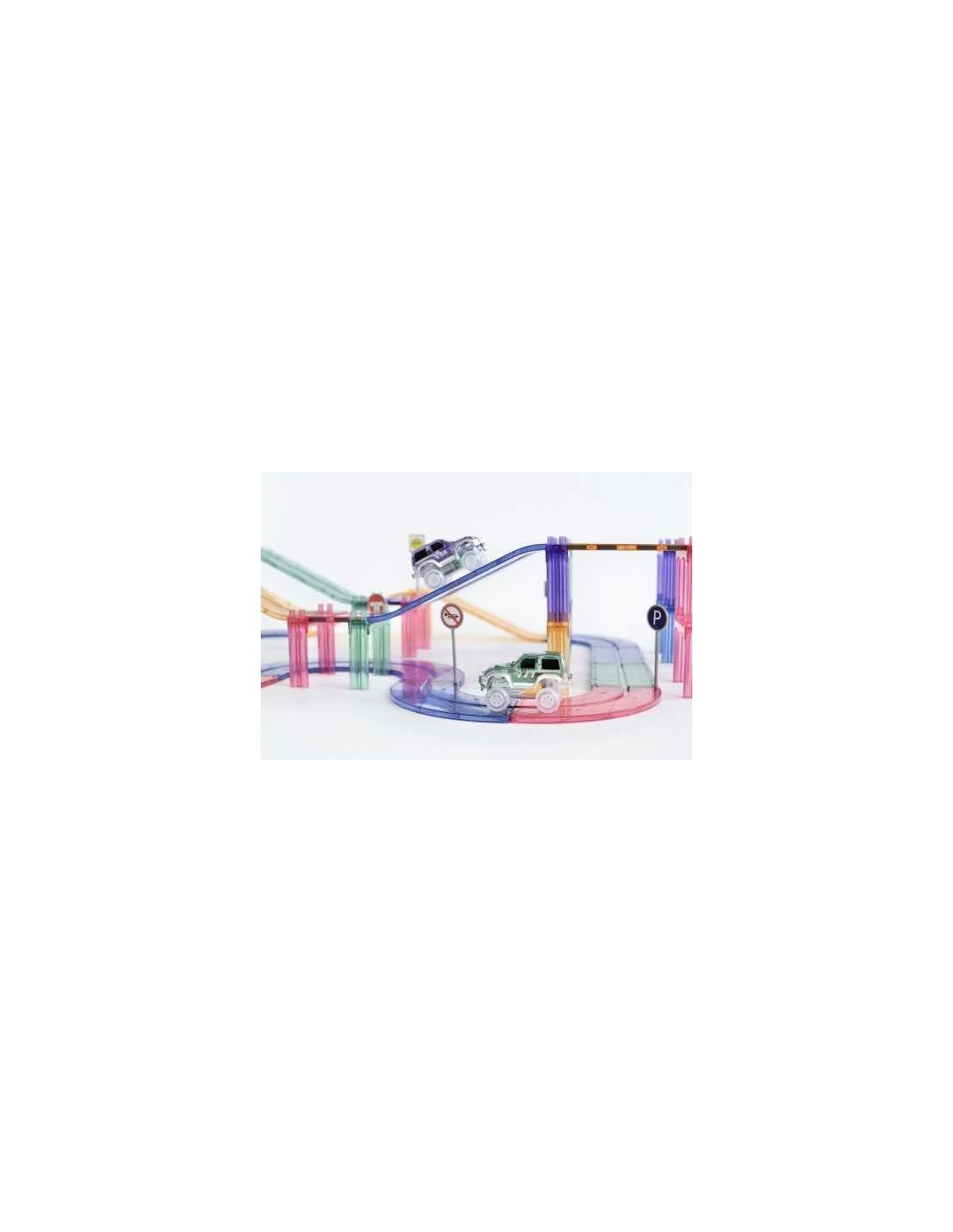 Se incluyen señales de tráfico, un coche que se conduce solo y pilares para una diversión adicional.