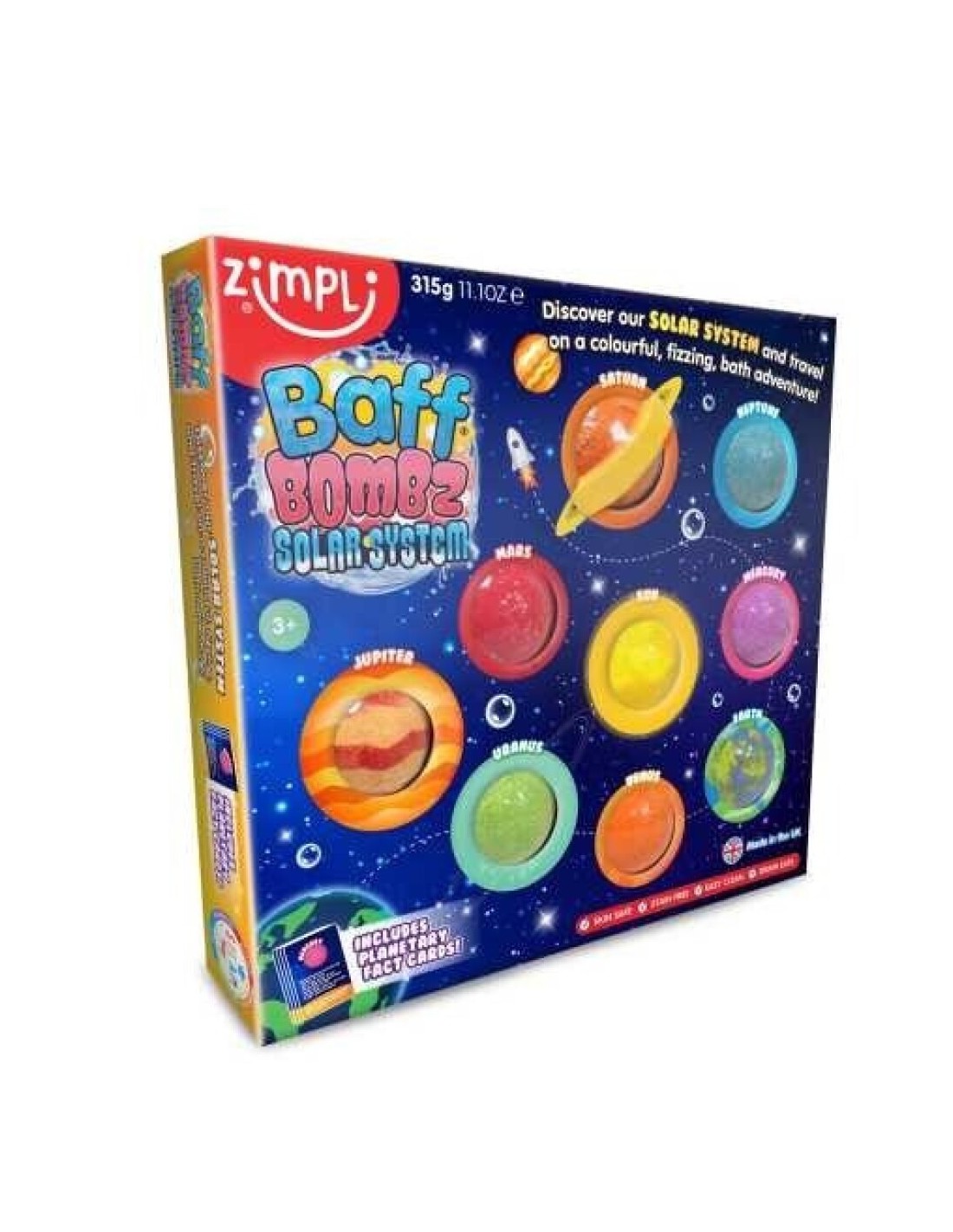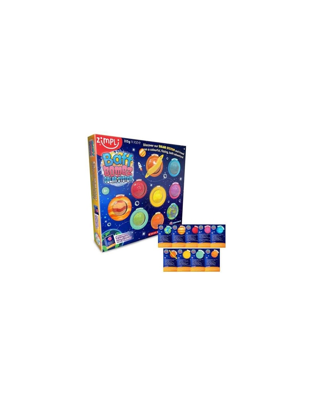 Contiene: 9 bombas de baño de 35 gramos. Cada una representa un planeta y un color diferenciado.