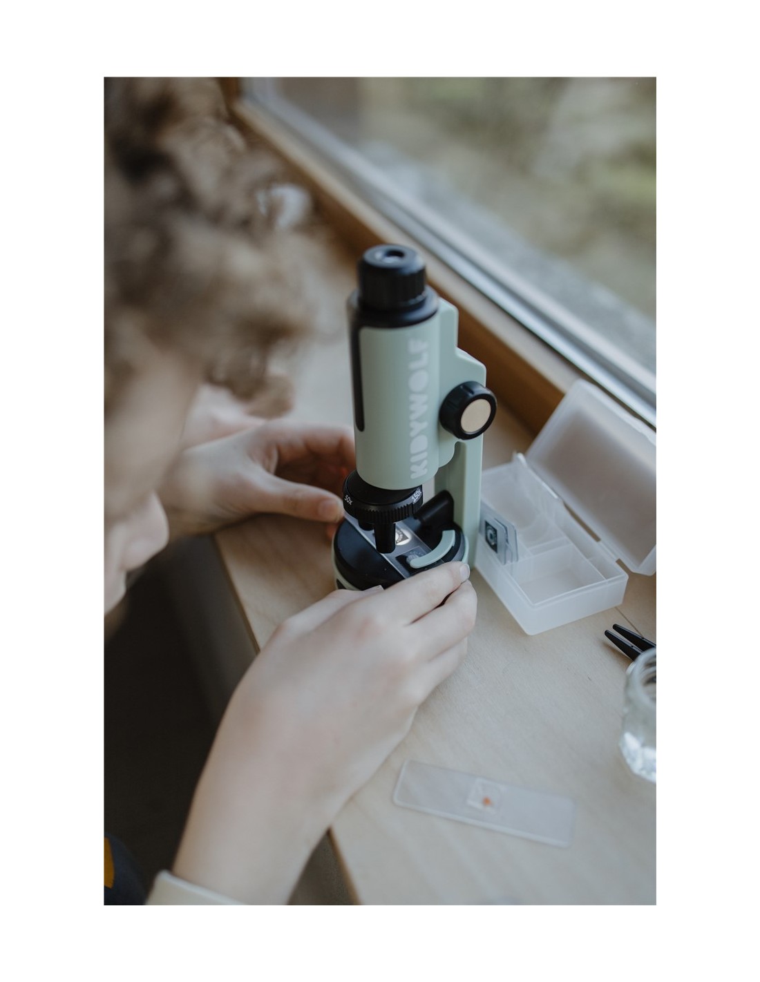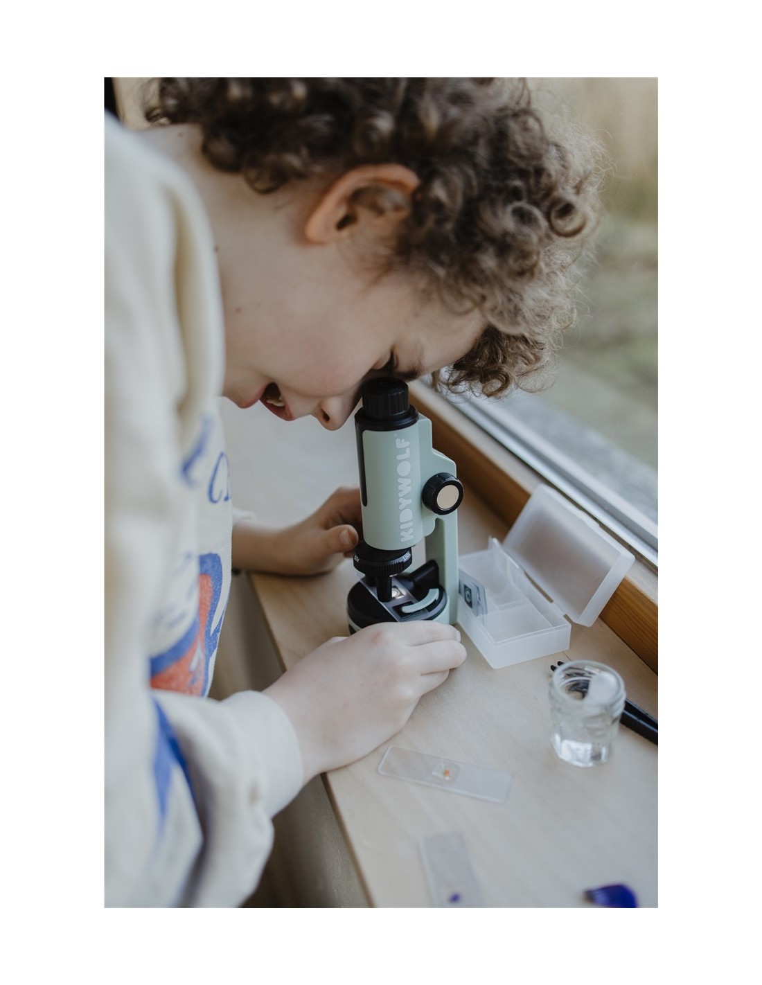 El KIDYMICROSCOPE es un microscopio portátil diseñado especialmente para despertar la curiosidad científica en peques. Es compacto, ligero y fácil de usar, pensado para que puedan hacer observaciones microscópicas de forma autónoma y divertida.