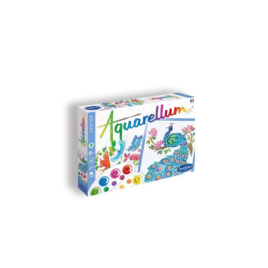 Pavos reales, búhos, colibríes, mariposas... ¡Imagínese en un gran parque, rodeado de multitud de suntuosos animales! Usando tu paleta Aquarellum, coloréalas con todos los colores del arcoíris.