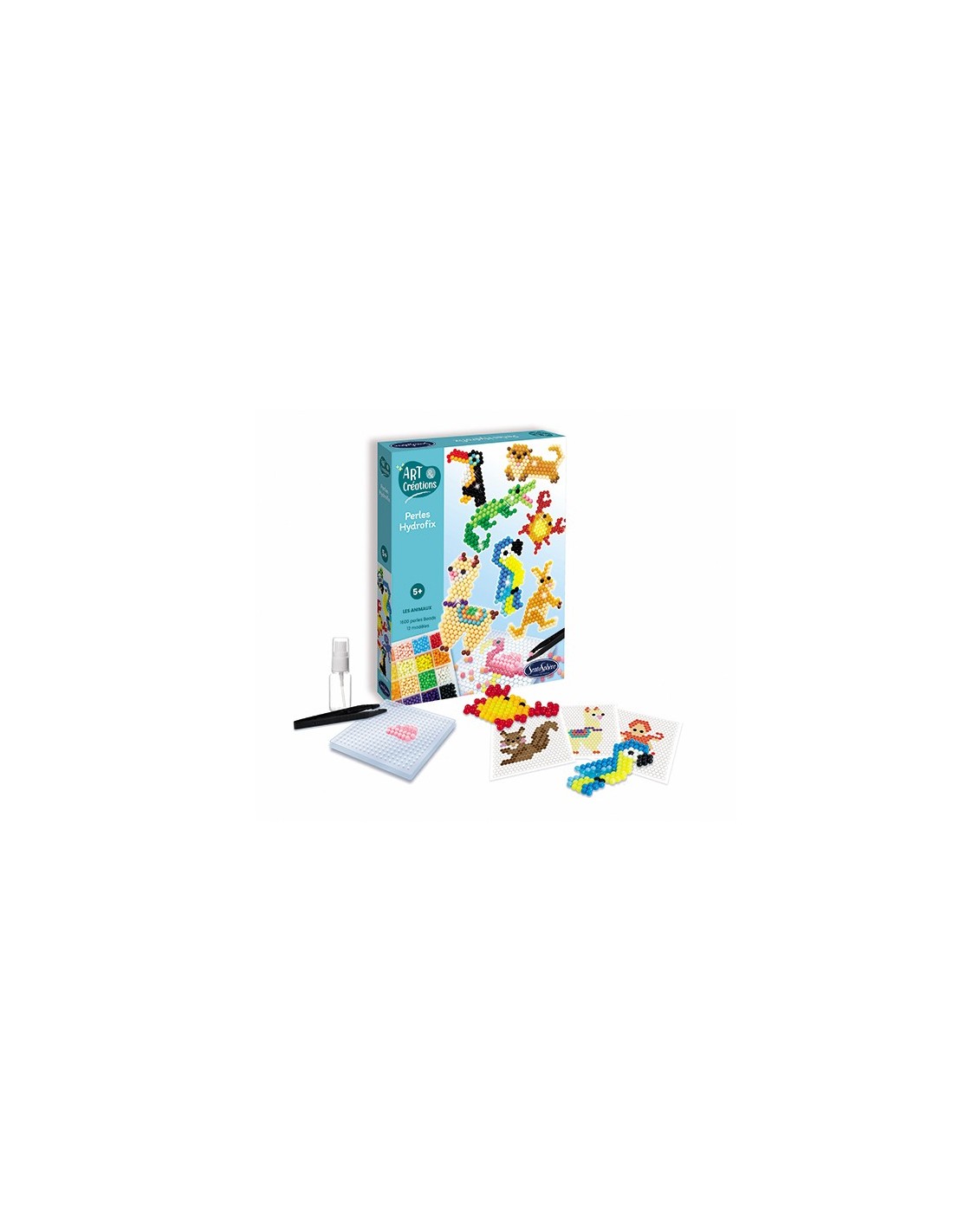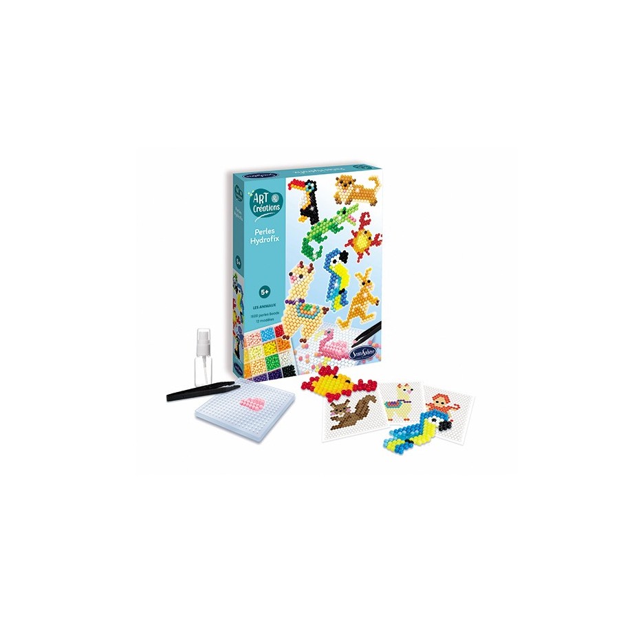 Con 1500 perlas de distintos colores para crear fantásticos animales. Las perlas se pegan juntas gracias al agua que dispensamos con el bote de spray.