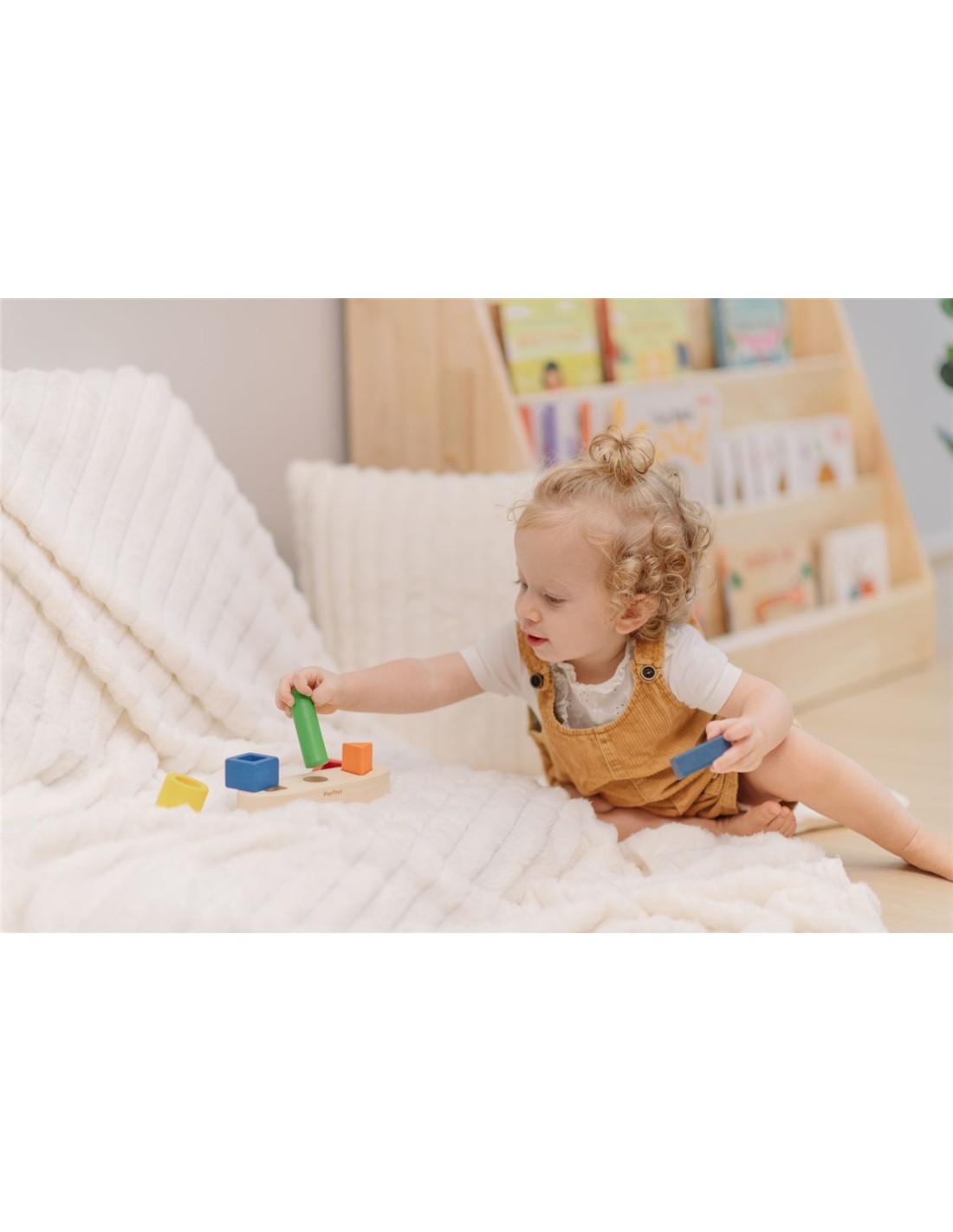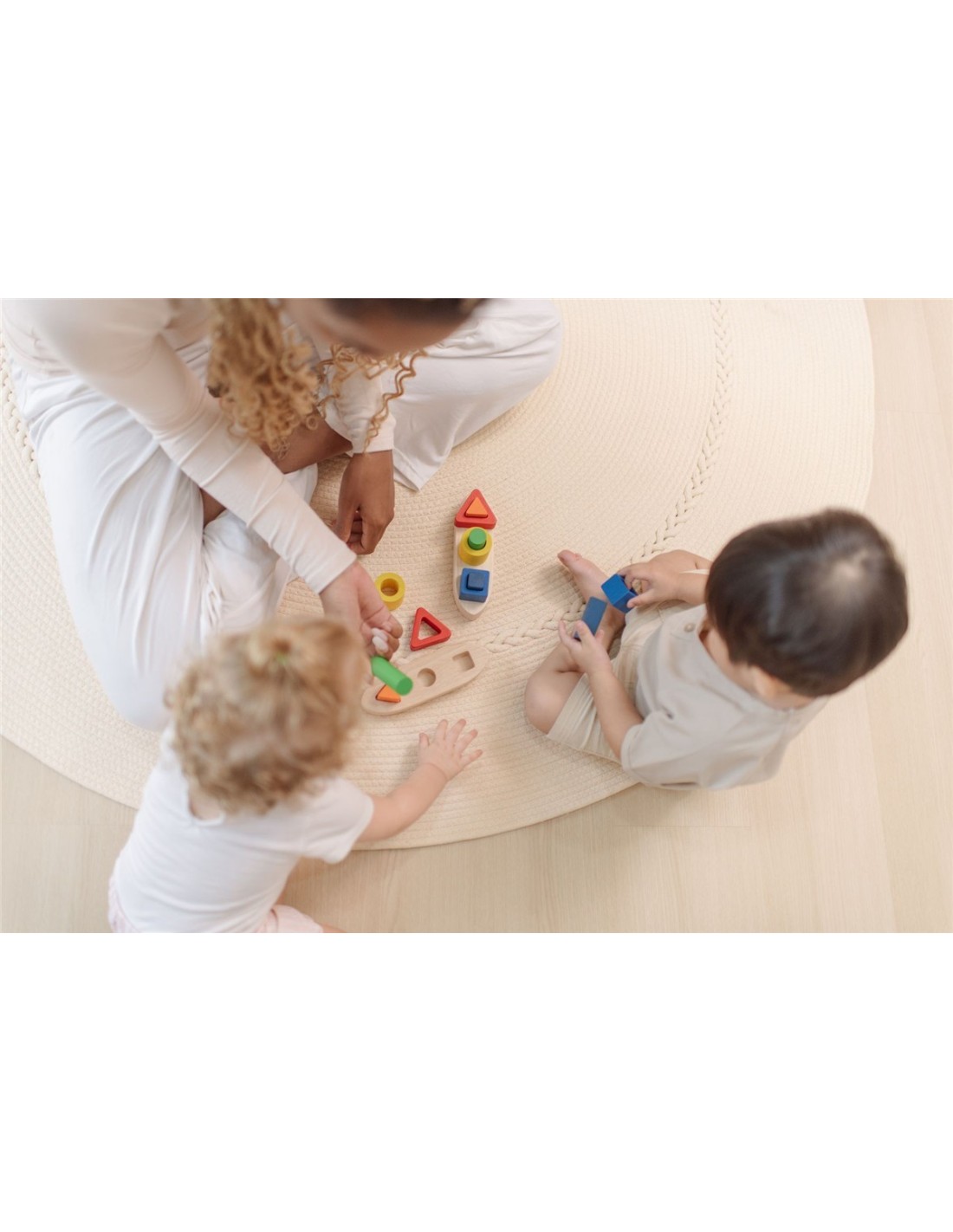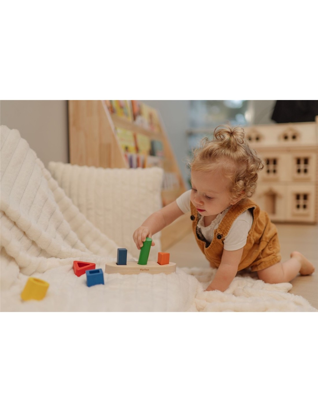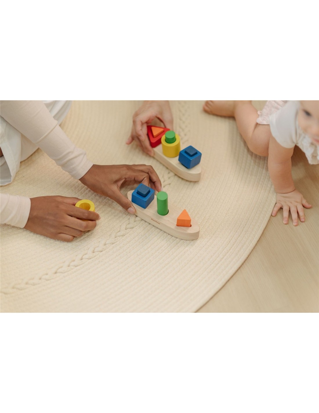 Este juguete de temática náutica fomenta la clasificación y la secuenciación mientras lxs niñxs unen las formas geométricas 3D con sus correspondientes ranuras en el barco. Ayuda a desarrollar habilidades de clasificación, reconocimiento de orden y la comprensión de las relaciones entre los objetos, a la vez que mejora la coordinación ojo-mano, la motricidad fina y la capacidad para resolver problemas. El juego incluye: una base con 3 agujeros, 3 bloques sólidos (triángulo, cilindro, cubo) y 3 bloques huecos (triángulo, cilindro, cuadrado). Parte de nuestra colección de inspiración Montessori, este juguete fomenta la clasificación y la secuenciación con formas tridimensionales y un barco representativo. Fabricado de forma sostenible con materiales ecológicos, como madera de caucho sin químicos y tintes a base de agua.