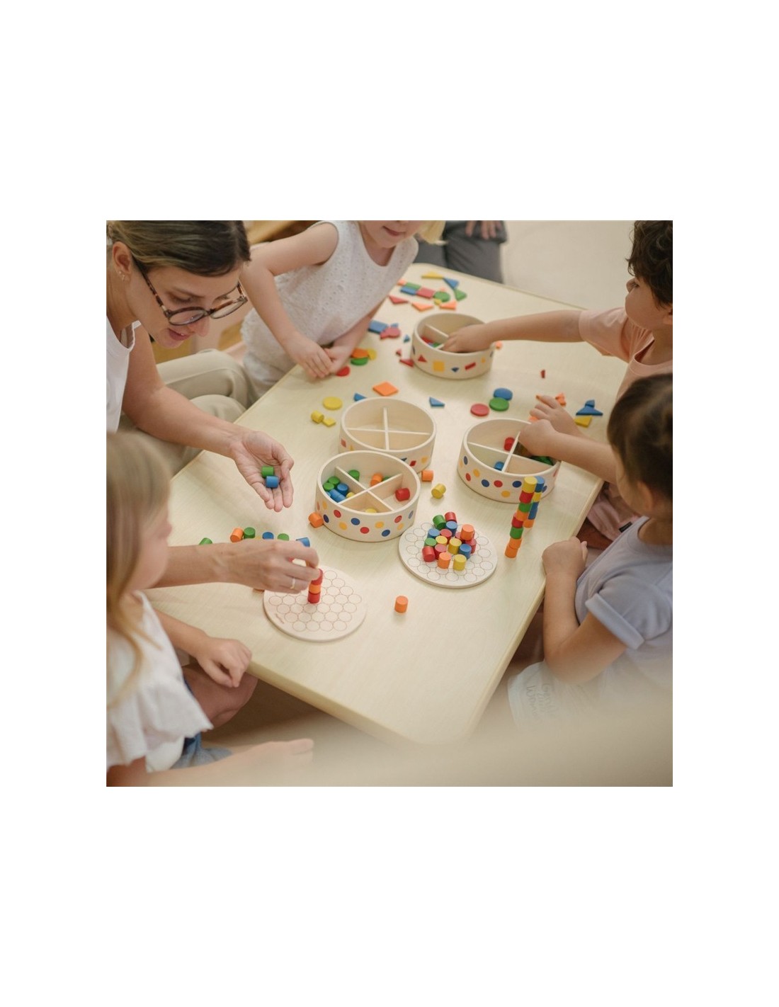 Fomenta la creatividad, el pensamiento sistemático y el desarrollo motor fino mientras organizan clavijas de colores formando patrones, creando diseños tridimensionales.