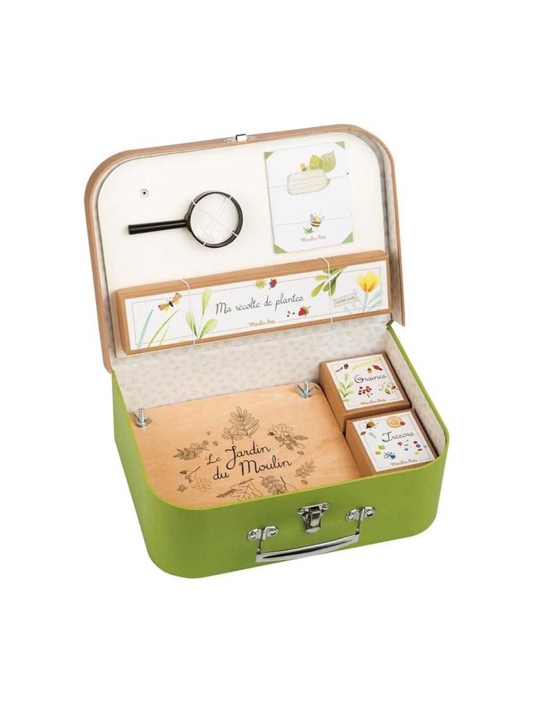 Lupa, cajitas, prensa flores madera, cuaderno