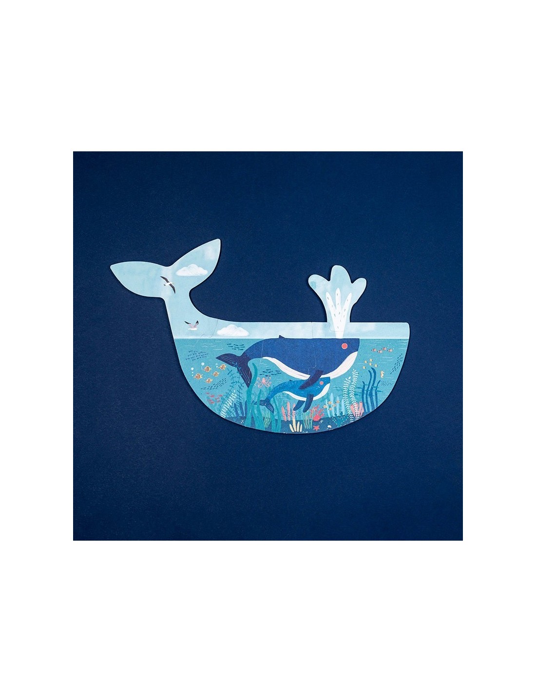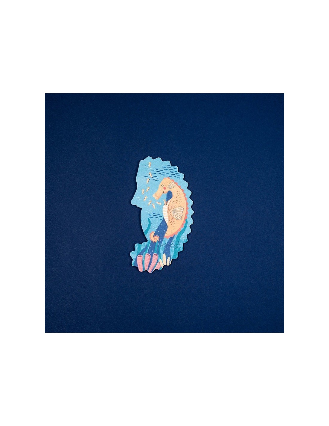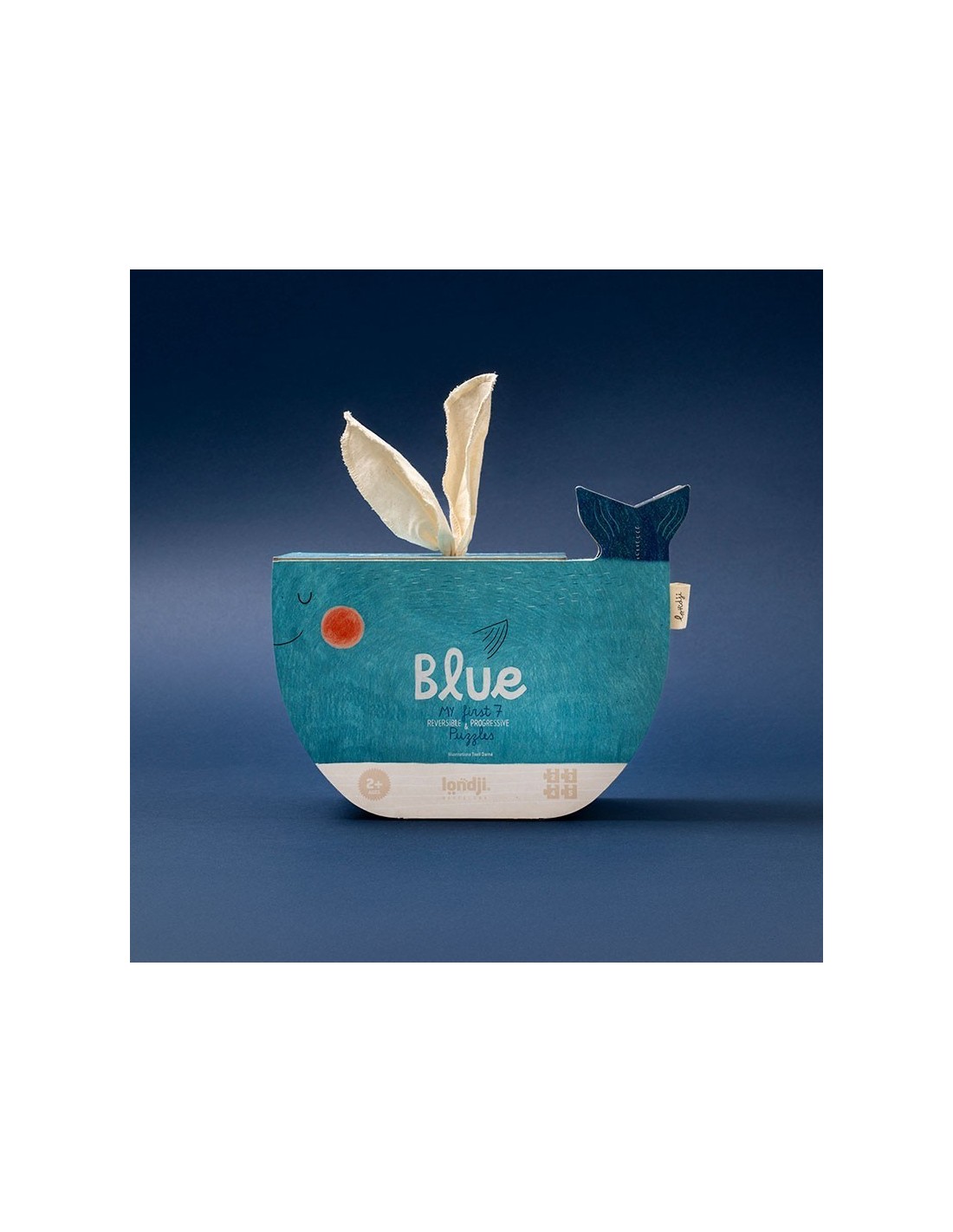 7 puzzles reversibles y progresivos con figuras de 2, 3, 4 y 5 piezas para que los más pequeños descubran los animales marinos. Sostenible. Ideal como primer puzzle.
