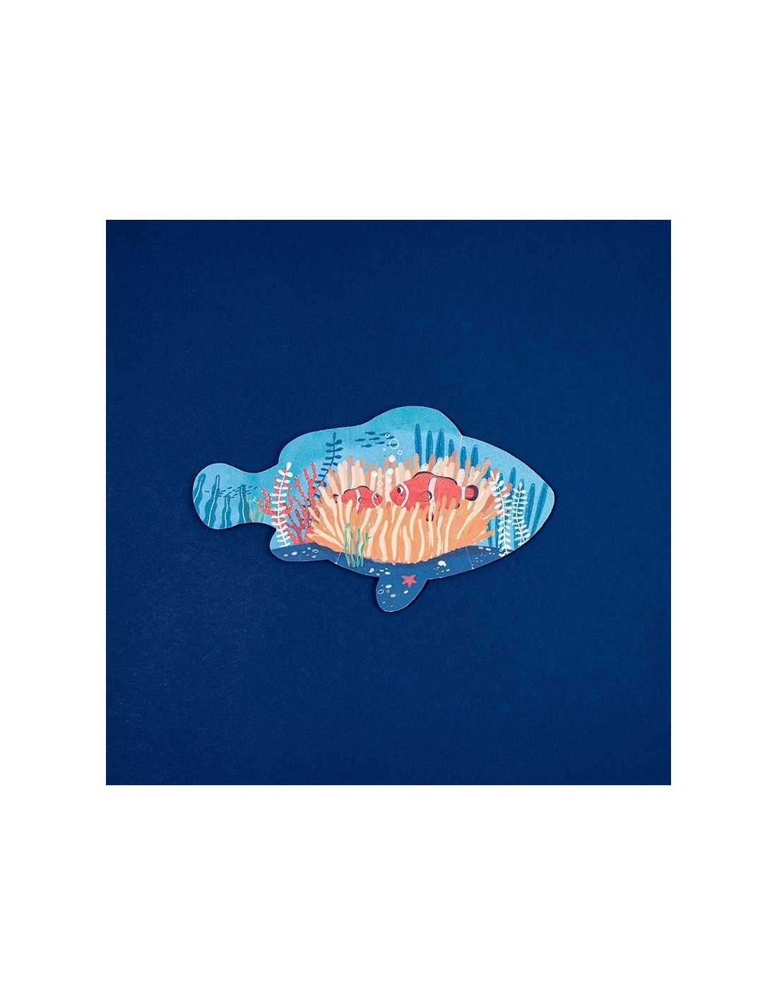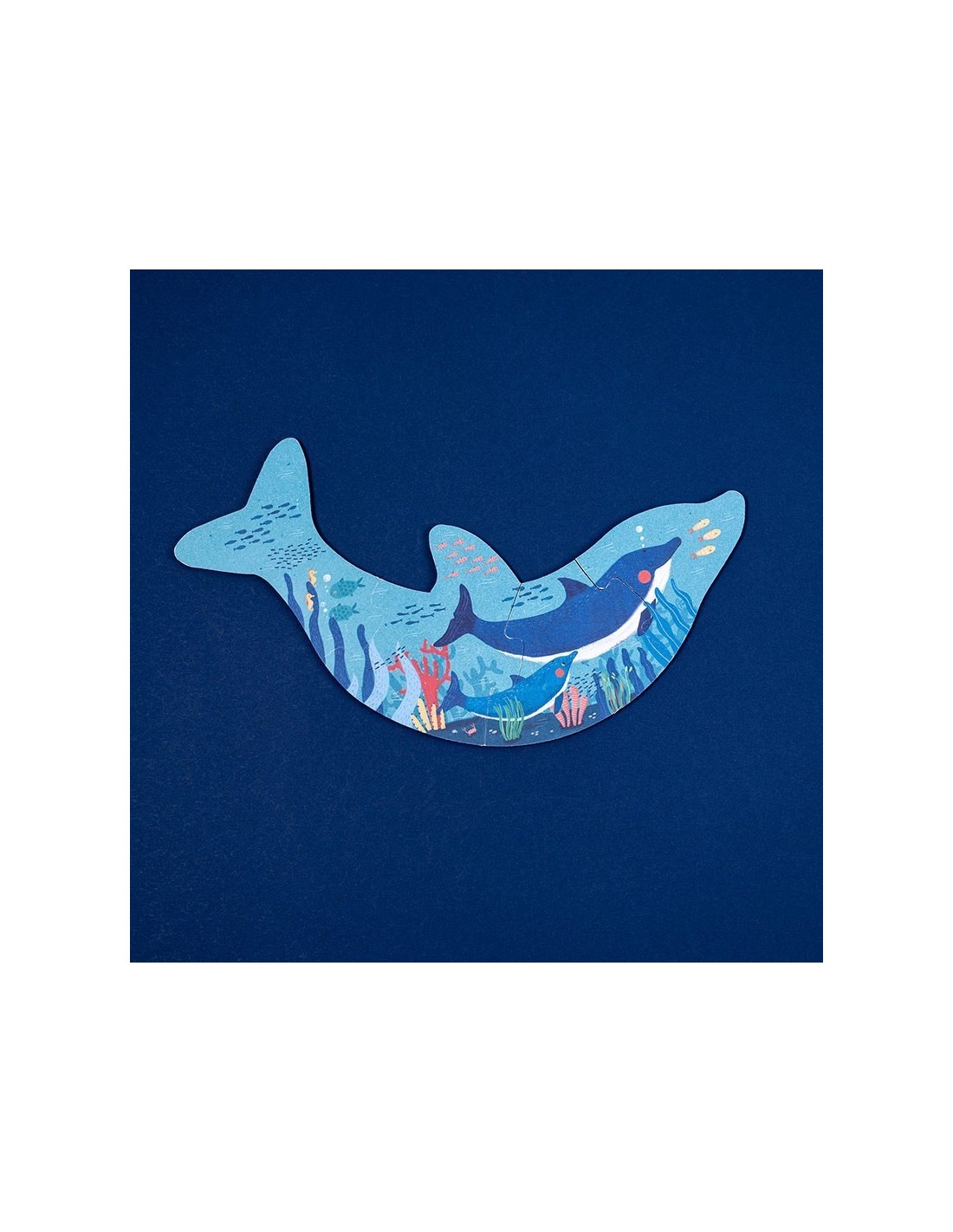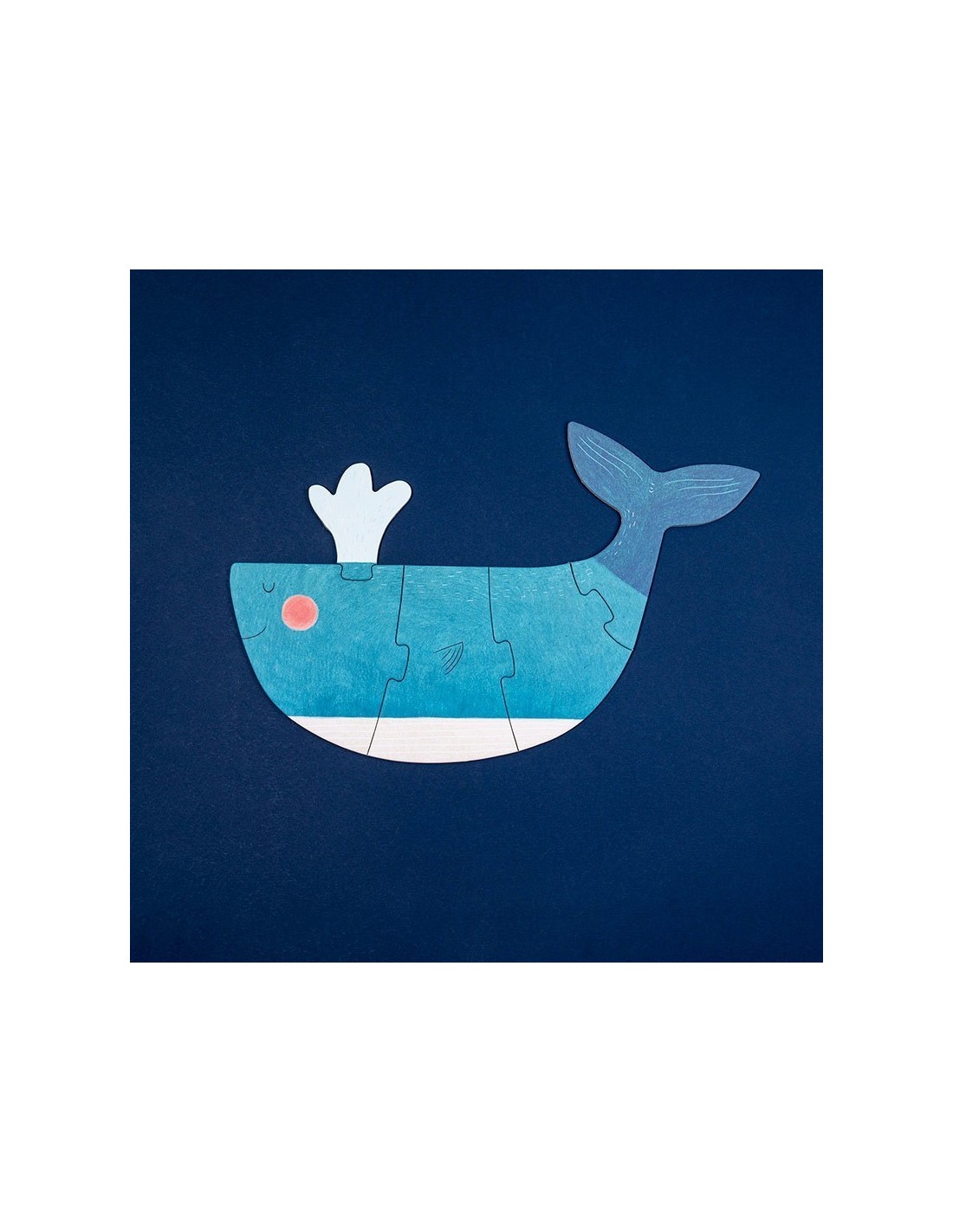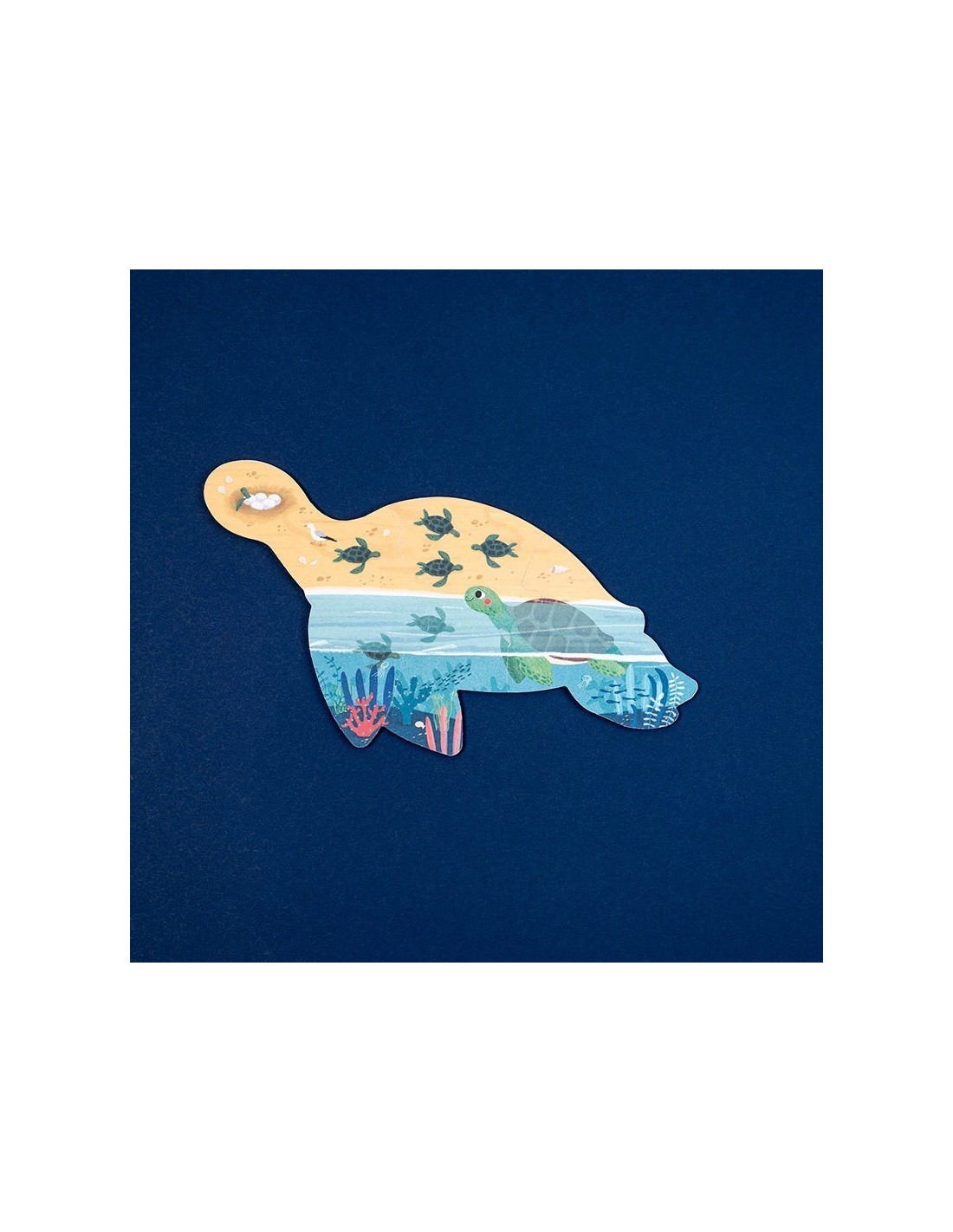 7 puzzles reversibles y progresivos con figuras de 2, 3, 4 y 5 piezas para que los más pequeños descubran los animales marinos. Sostenible. Ideal como primer puzzle.