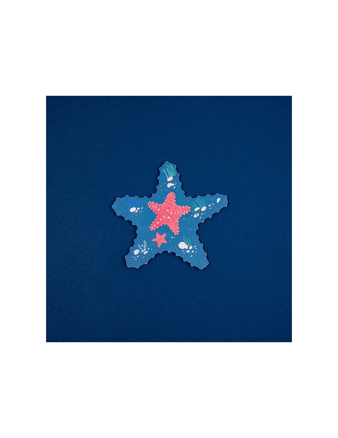 ¡Adéntrate en el fondo del mar! Entre olas tranquilas y un fondo submarino lleno de formas y colores, viven criaturas marinas cargadas de magia: la estrella de mar que se estira con calma, el caballito de mar que cabalga sobre las olas, el delfín que salta con alegría, el tiburón que nada con majestuosidad, el pez payaso que juega entre los corales y la gran ballena que guía su camino.