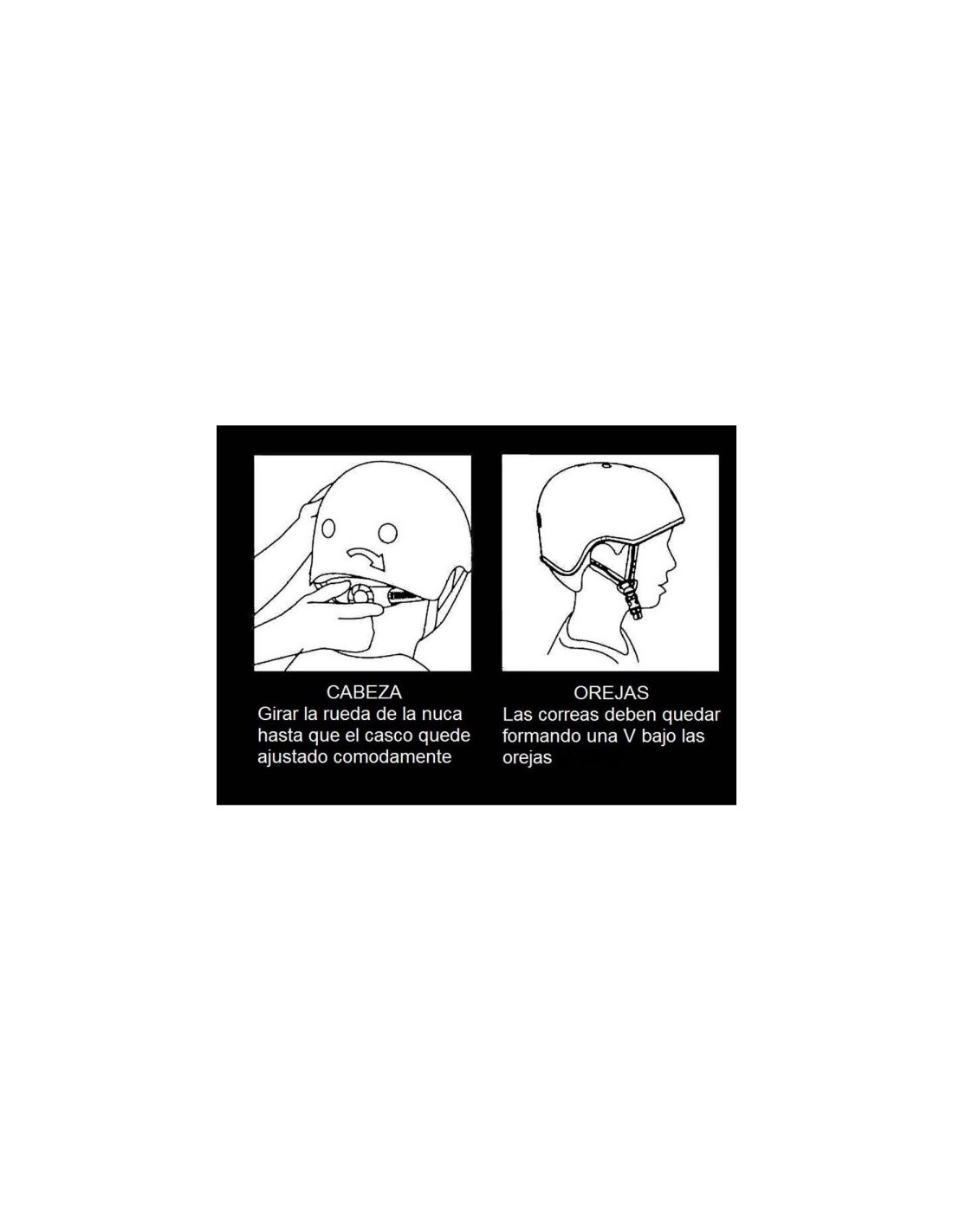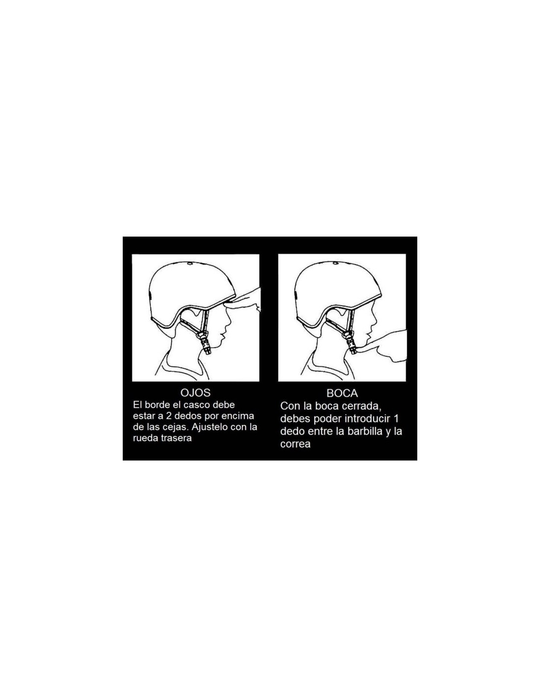 - El borde el casco debe estar a 2 dedos por encima de las cejas. Ajustelo con la rueda trasera