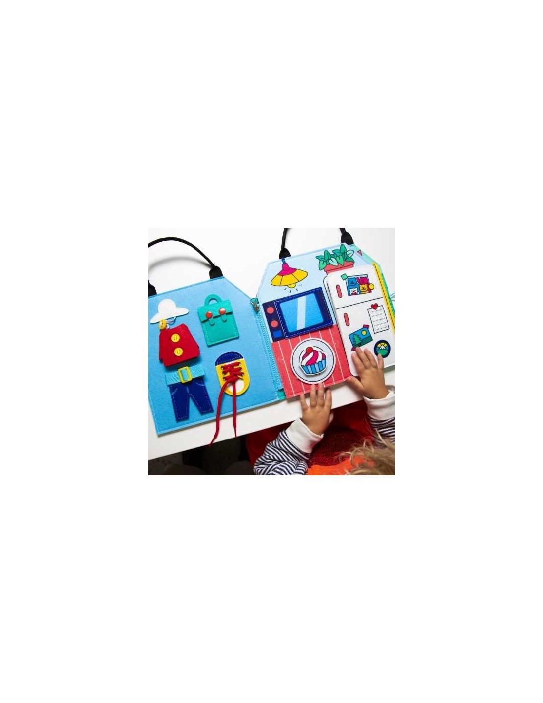 Esta actividad permite aprender conceptos básicos como cordones, cremalleras, alimentos, letras, prendas de vestir....