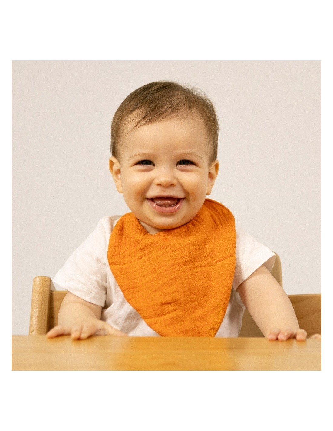 3 capas: muselina de algodón orgánico en la parte frontal, capa intermedia para mantener seco al bebé y rizo de algodón en la parte trasera para absorber.