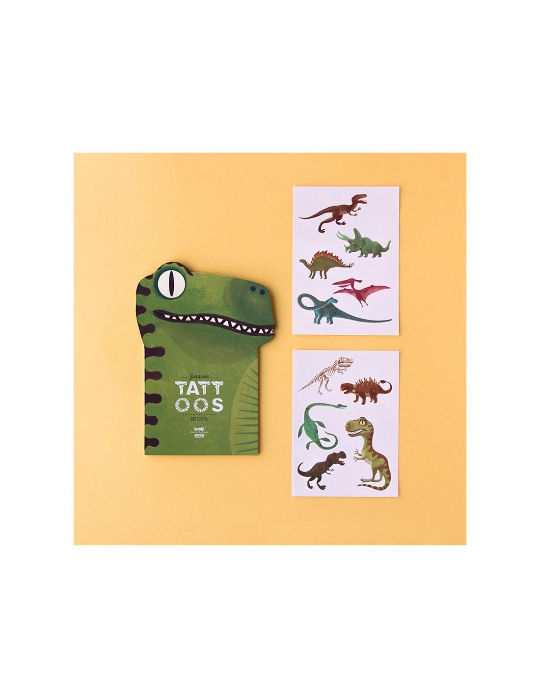 10 calcomanías temporales de dinosaurios que podrás lucir en diferentes partes de tu cuerpo. Con test de tolerancia dermatológica. Ideal para fiesta temática de dinos.