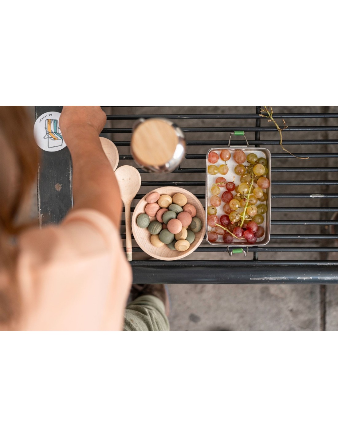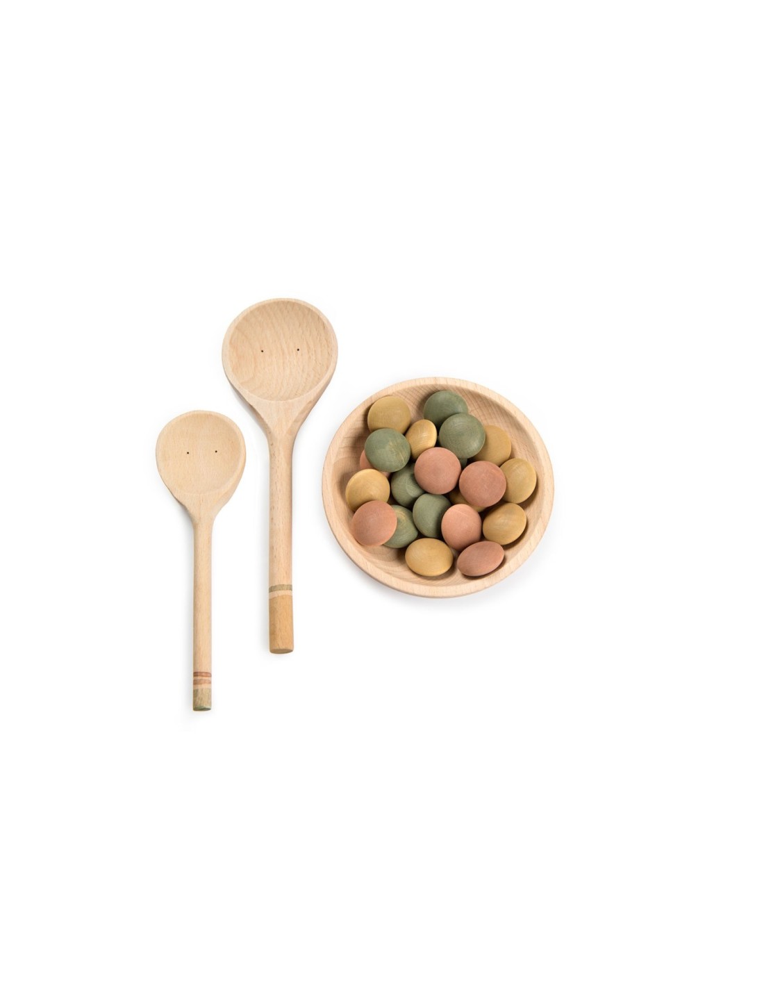 Un juego compuesto por un plato, dos cucharas y 24 piezas de deliciosa comida. Es un gran complemento para el juego simbólico, pero debido a su naturaleza abierta, puede convertirse en cualquier cosa que los niños deseen en cada momento.