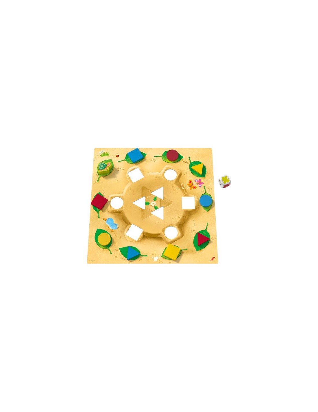 Juego cooperativo con dado de colores y formas en el que los jugadores/as deben ir llenando los huecos del tablero con las distintas piezas geométricas de colores, a partir del resultado obtenido al lanzar el dado. Dos variantes de juego, además de juego libre.