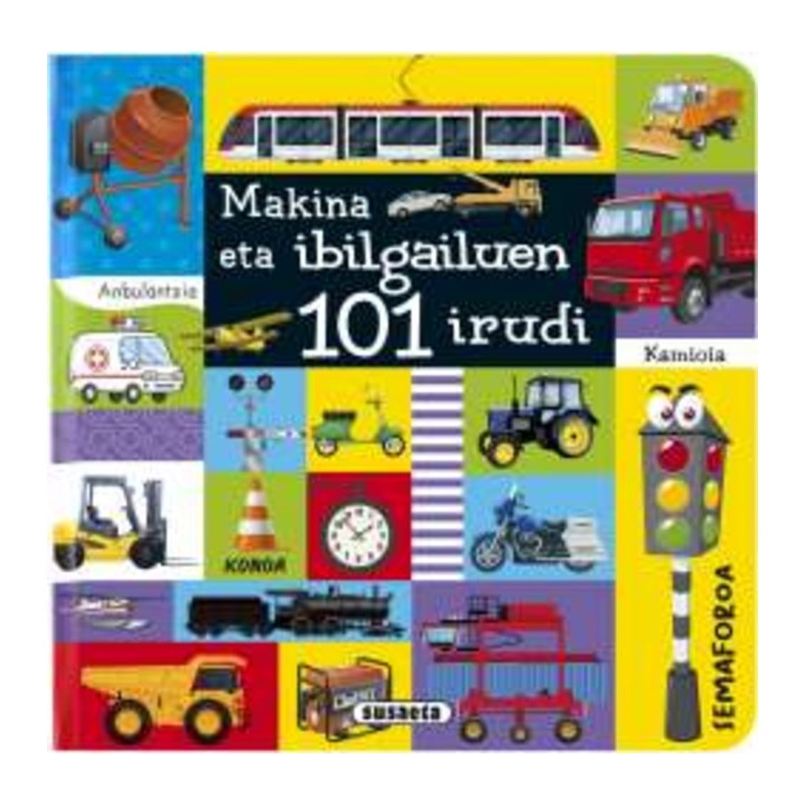 Etxeko txikienek liluraz begiratzen diote inguruko munduari. Ikusten duten guztia berria da, eta hamaika galdera sorrarazten dizkie.Liburu hau era guztietako garraiobide eta makinen kolore biziko irudiz beteta dago. Haren bidez, haurrek haietako bakoitzaren izena ikasi eta betiko gogoratuko dute.Etxean edo bidaian ondo pasatzeko ideia bikaina!