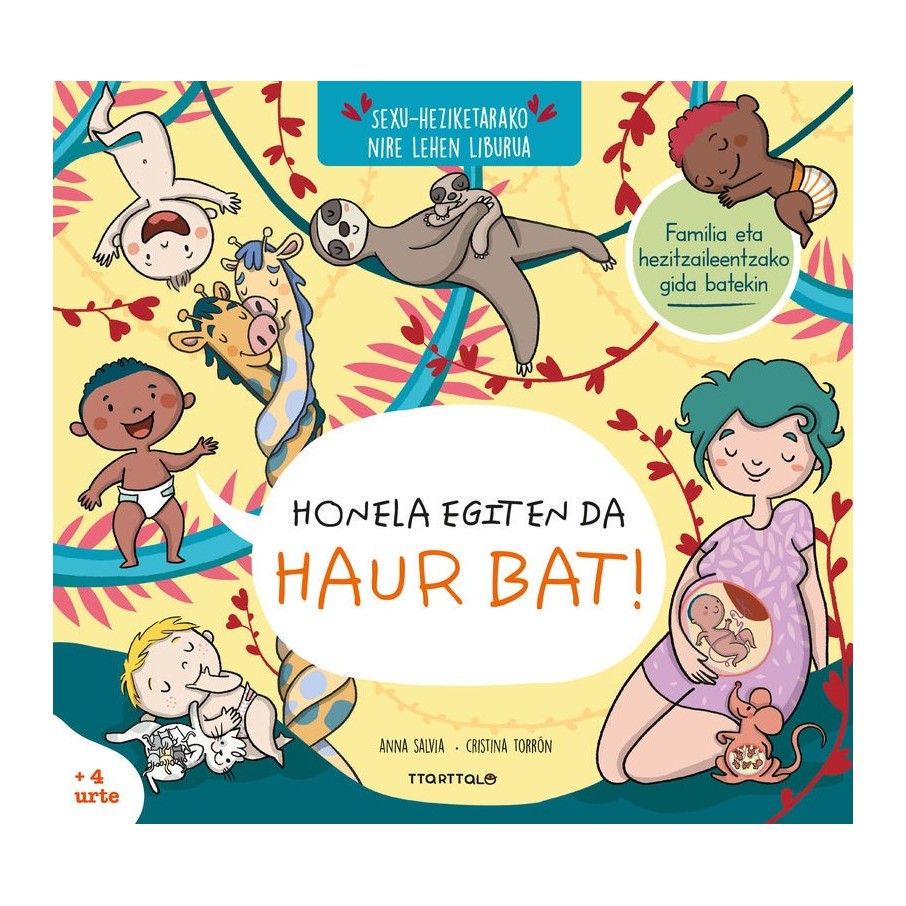 Haurra nola sartzen eta ateratzen da amaren sabeletik? Haurrak zer jaten du jaio baino lehen eta jaio eta gero? Jirafa batek har dezake elefante baten esnea? Animalia guztiek modu berean egiten al dituzte kumeak? Nork zaintzen du ama, amak haurra zaintzen duen bitartean? Aurkitu galdera horien guztien erantzunak ezinbesteko liburu honetan, etxeko txikienek giza-sorkuntzaren prozesu harrigarri eta zoragarria ezagutu dezaten. Haurrentzako bilduma hau Anna Salvia psikologo eta sexu-heziketan adituak, eta Cristina Torrón ilustratzaile eta errealizatzaile multimediak sortu dute, txikienekin sexualitateaz modu zuzen, argi eta dibertigarrian hitz egiteko lagungarri izan dadin.