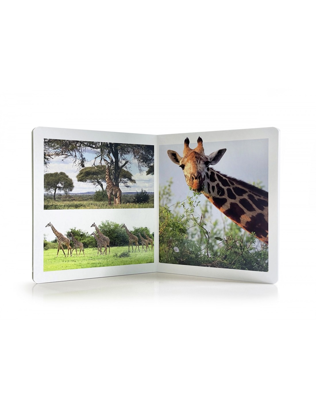 Libro con fotografías de animales que habitan en la sabana.