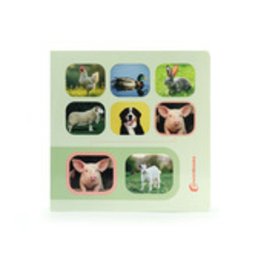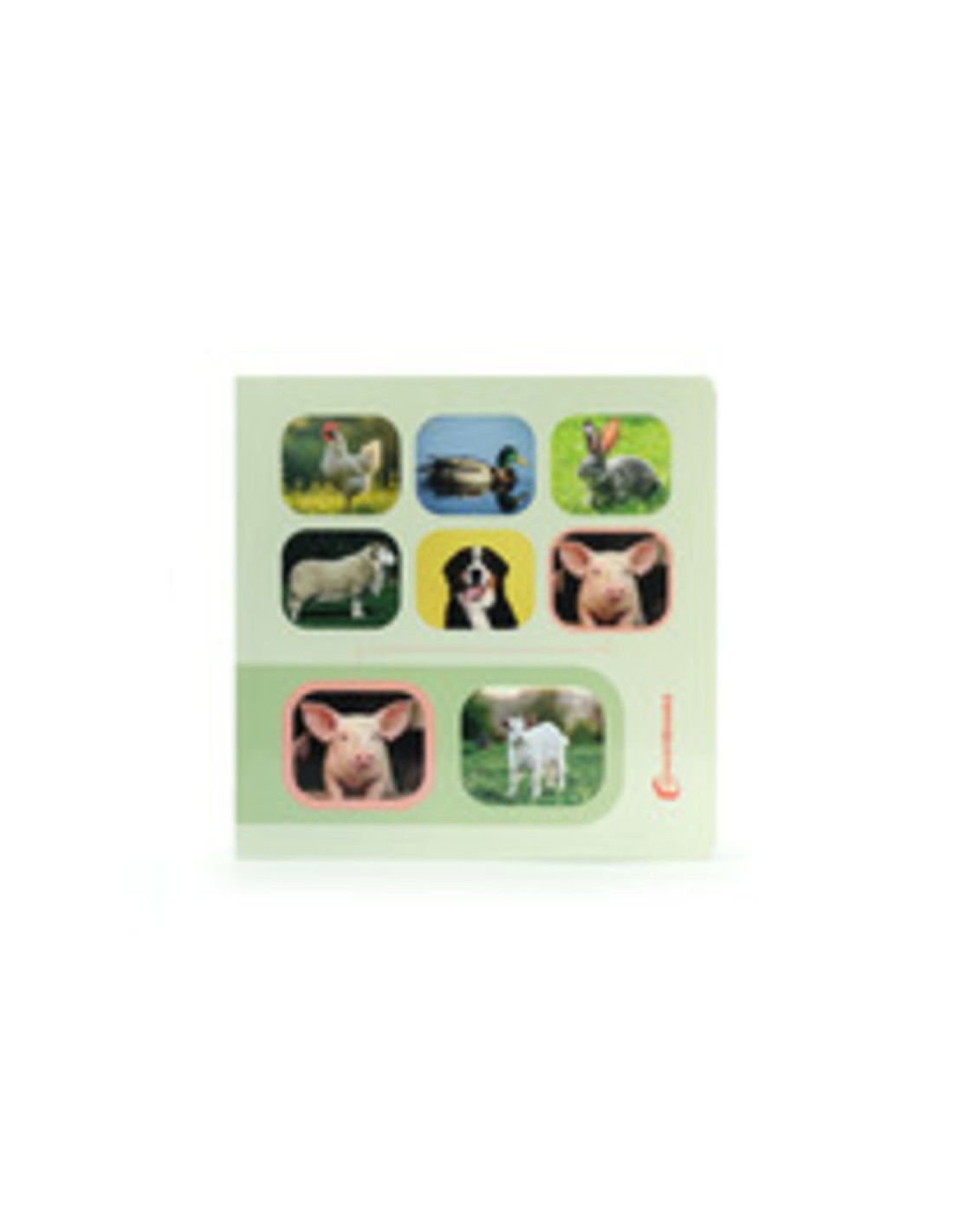 Libro de cartoné con imágenes reales de animales de la granja para buscar y encontrar