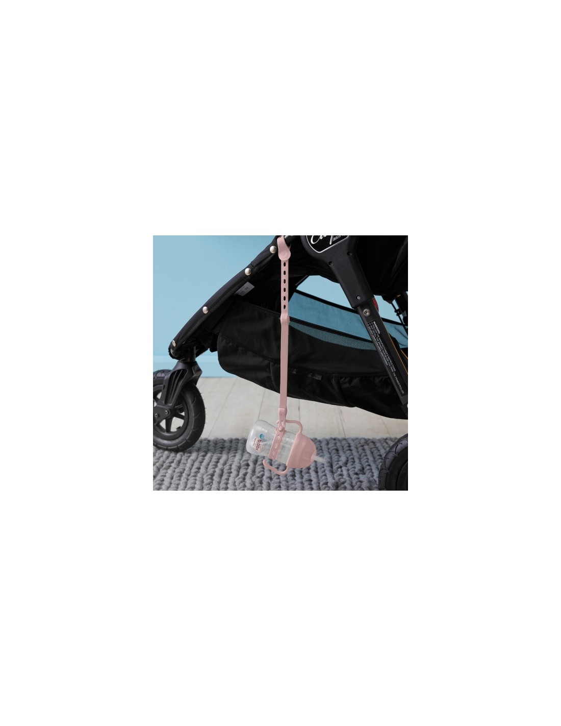 El sistema Connect a Cup garantiza que los biberones y tazas de los bebés estén siempre a mano. No más tazas perdidas en el supermercado, no más biberones que se caen del cochecito, no más vasos que se caen de la mesa. La correa flexible conecta el biberón o la taza al cochecito, la silla o el asiento del coche. Dos cierres de seguridad garantizan que el sistema Connect a Cup se suelte en caso de tensión excesiva, para mayor tranquilidad. Probado para soportar un peso máximo de 400gr.