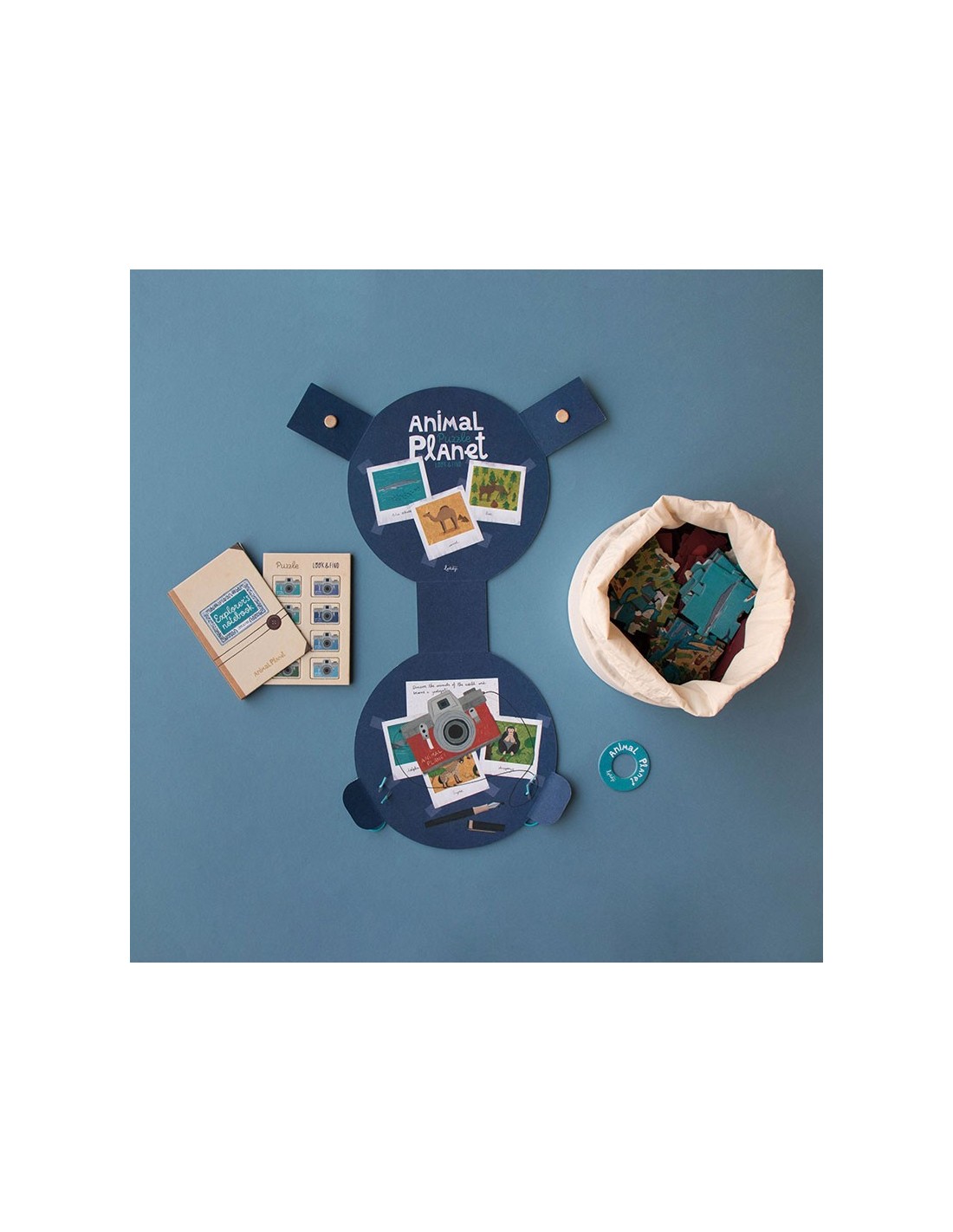 El puzzle incluye un juego de observación. Una vez montado, los jóvenes aventureros pueden elegir una expedición y asumir el reto de convertirse en zoólogos, buscando y encontrando especias animales para fotografiarlas.