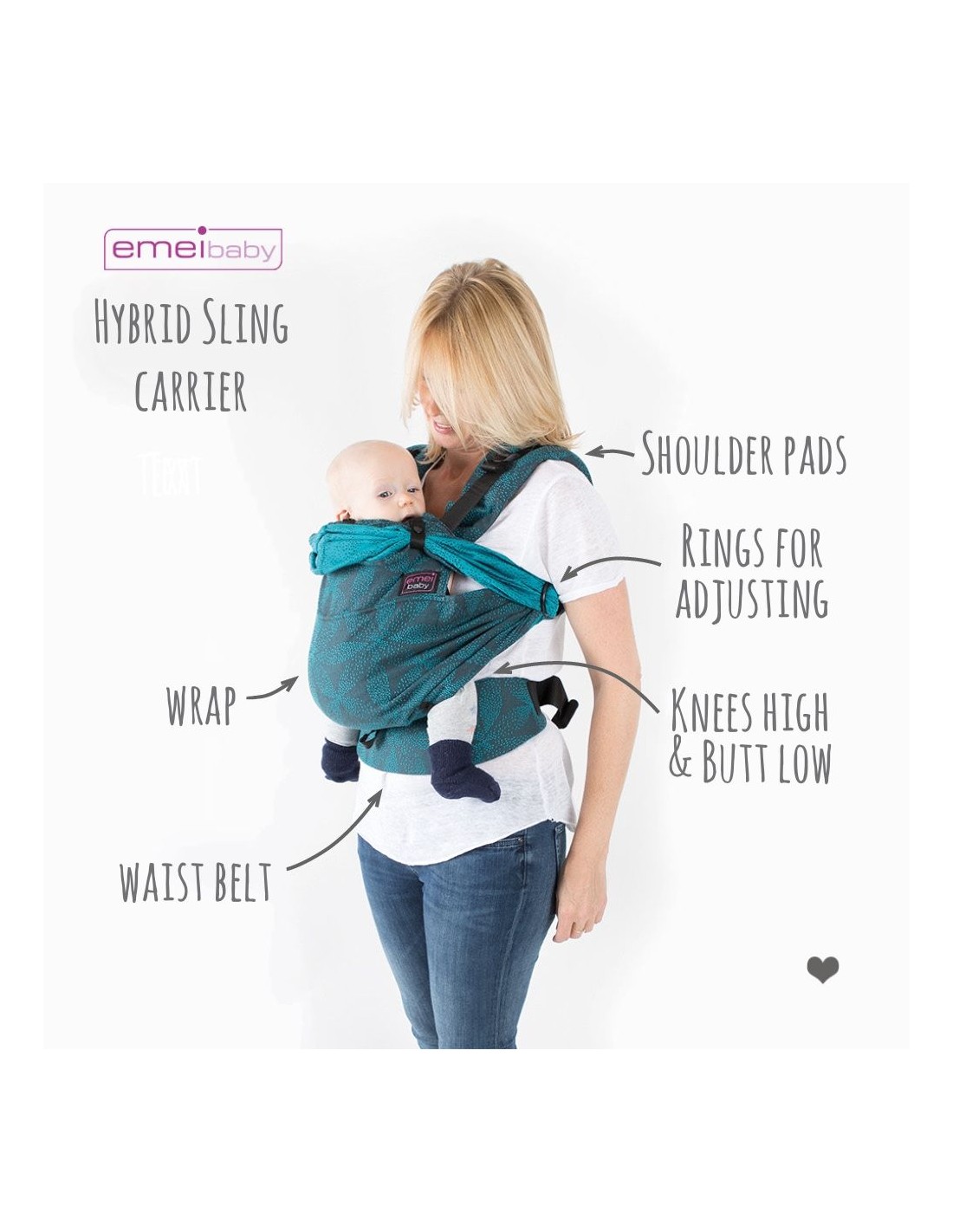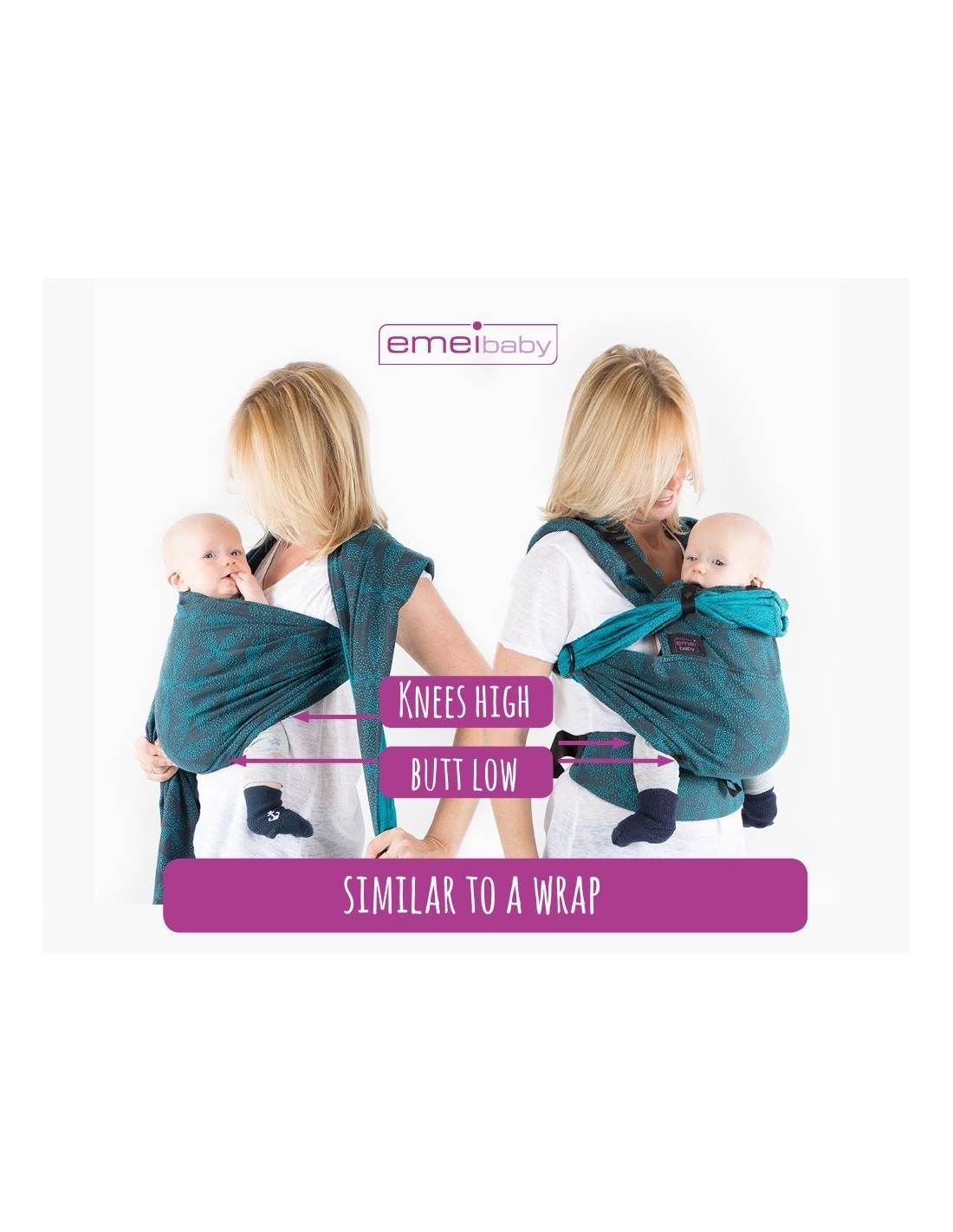 Emeibaby combina la comodidad y soporte punto por punto de un fular portabebés (el cuerpo de la mochila), y la facilidad y rapidez de colocación de una mochila portabebés.