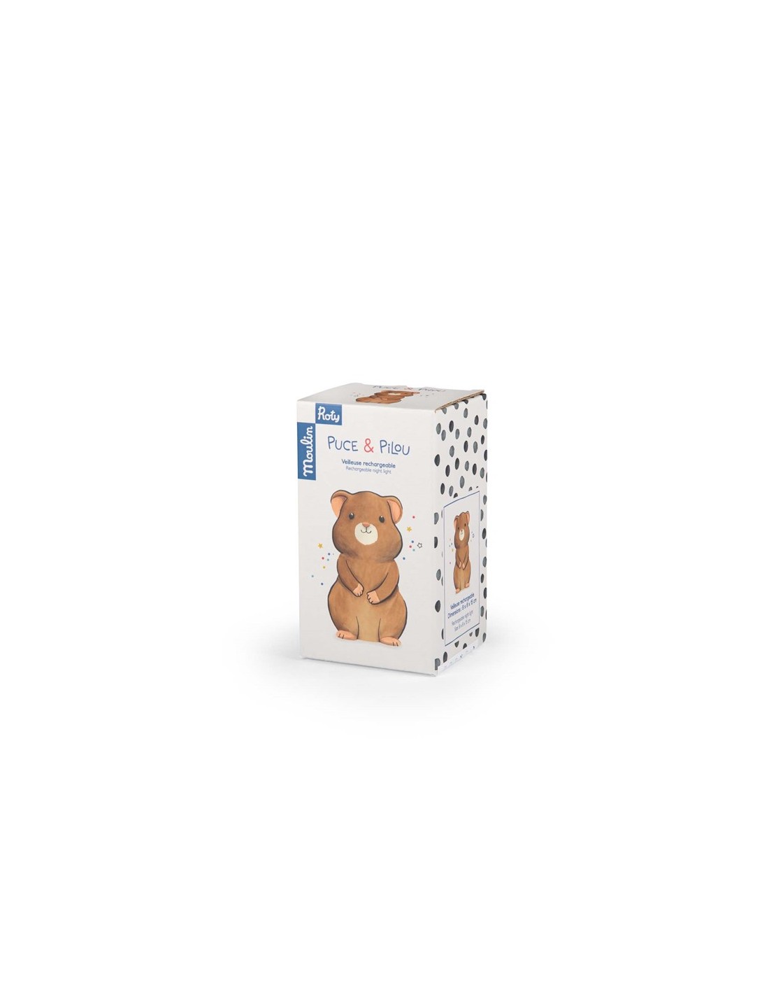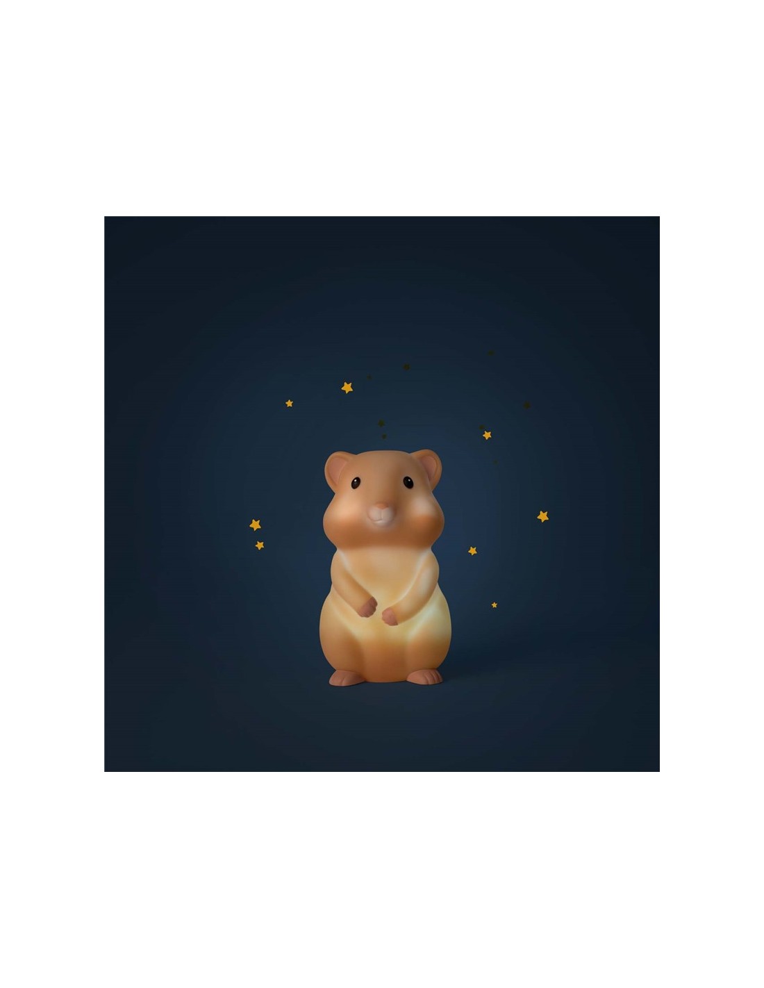 Lamparita de silicona suave con diseño de hámster, se carga a través de USB, tiene una autonomía de 15h y un modo temporizador que permite que se apague a los 30 minutos. Emite una luz tenue que ayudará a dormir de forma tranquila y segura.