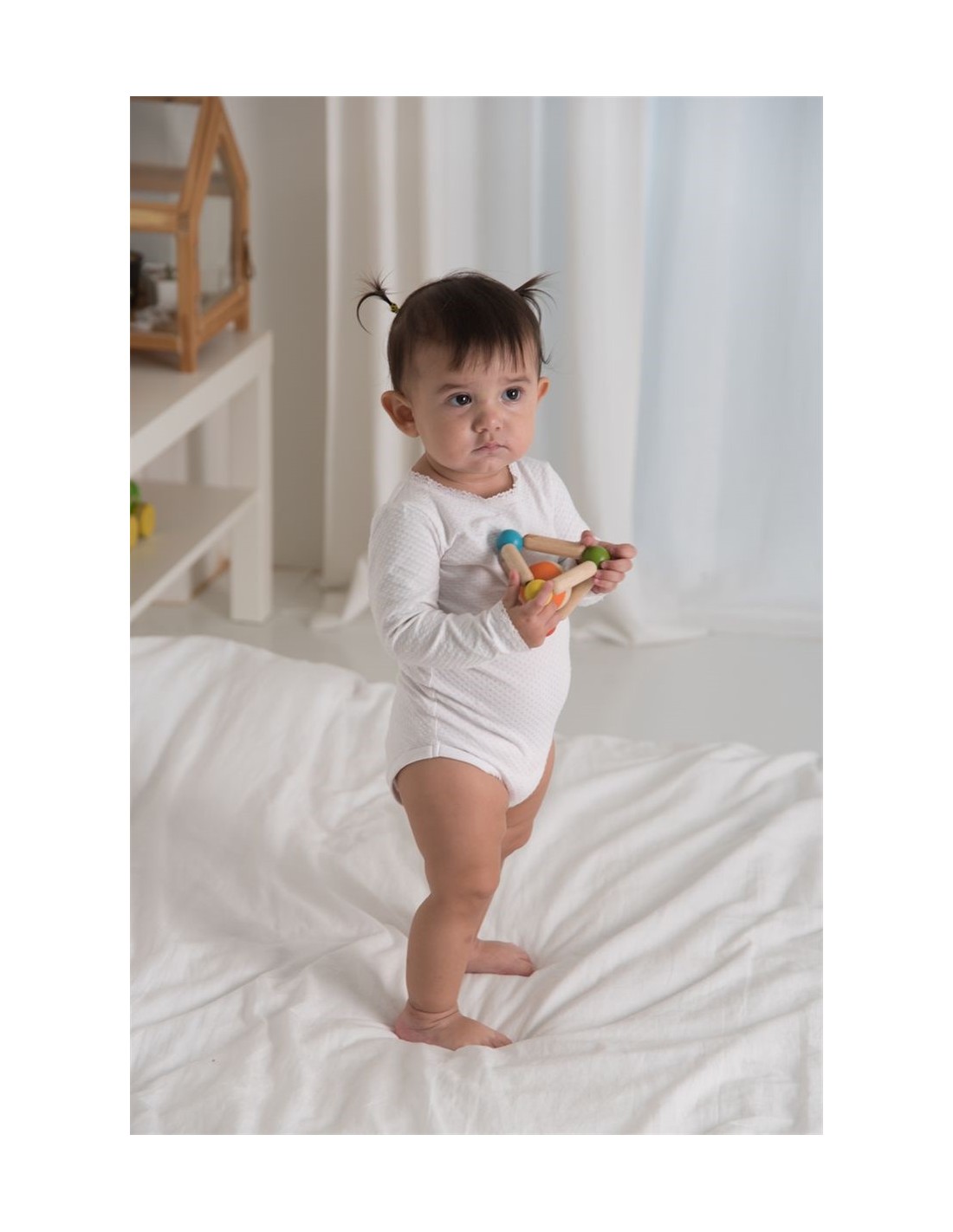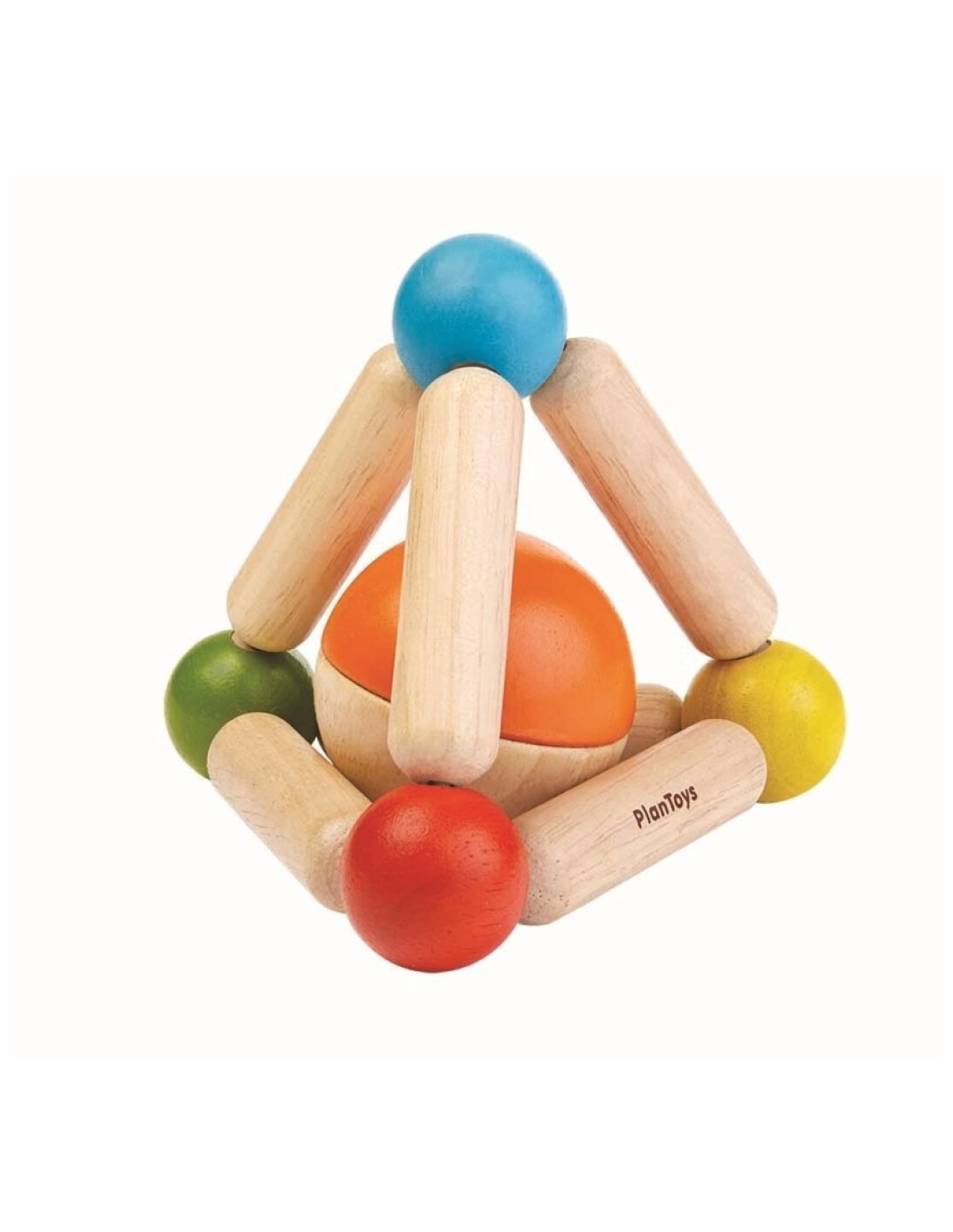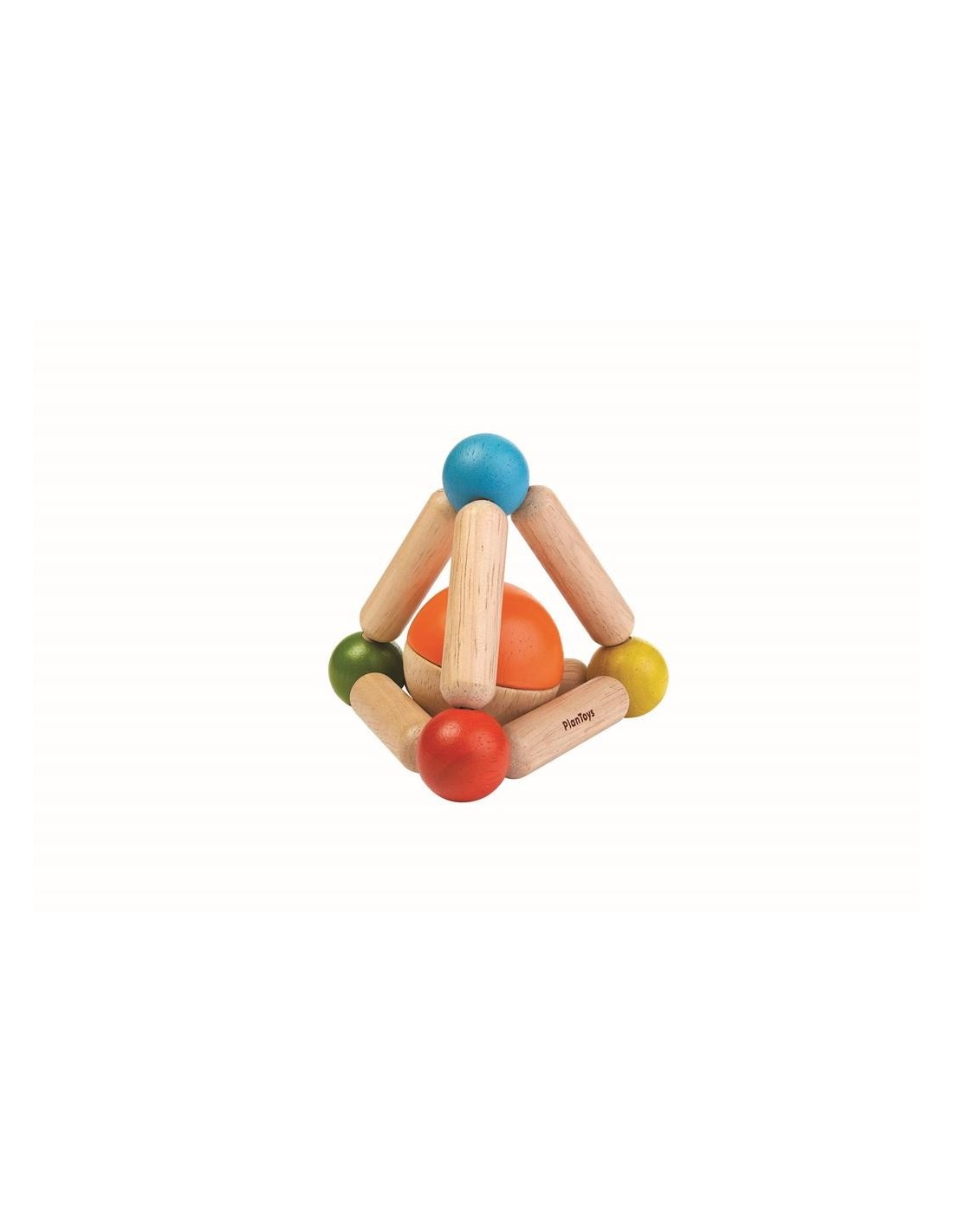 Este juguete de agarre con forma de triángulo viene con una bola de dos tonos que es desmontable y también se puede jugar como un sonajero.
