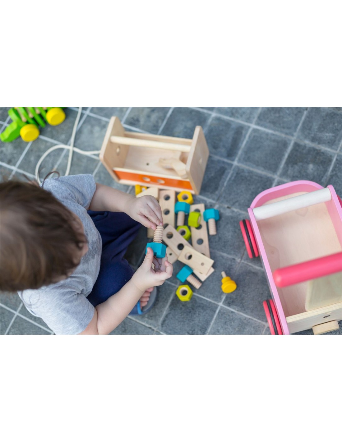 ¡Es una caja de herramientas que puede transformarse en un robot! No solo puedes construir cosas increíbles, sino que también tienes tu propio amigo robot. Este conjunto consta de 16 herramientas que incluyen un martillo, una llave inglesa con un destornillador, tuercas y tornillos y una caja de herramientas que puede ensamblarse como un robot.