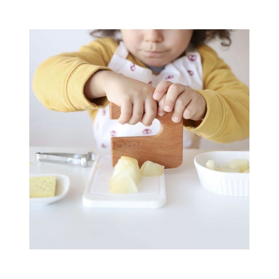 En skagfa, entendemos la importancia de contar con herramientas de cocina seguras para los niñxs. Por eso nuestro cuchillo Träkniv está fabricado con materiales naturales y no es tóxico. Nuestro cuchillo de madera seguro para niñxs es una excelente herramienta para fomentar la creatividad y las habilidades culinarias de los niños y al mismo tiempo garantizar su seguridad en la cocina. Entonces, si buscas un cuchillo seguro para que tus hijos aprendan a cocinar, Träkniv es el perfecto.