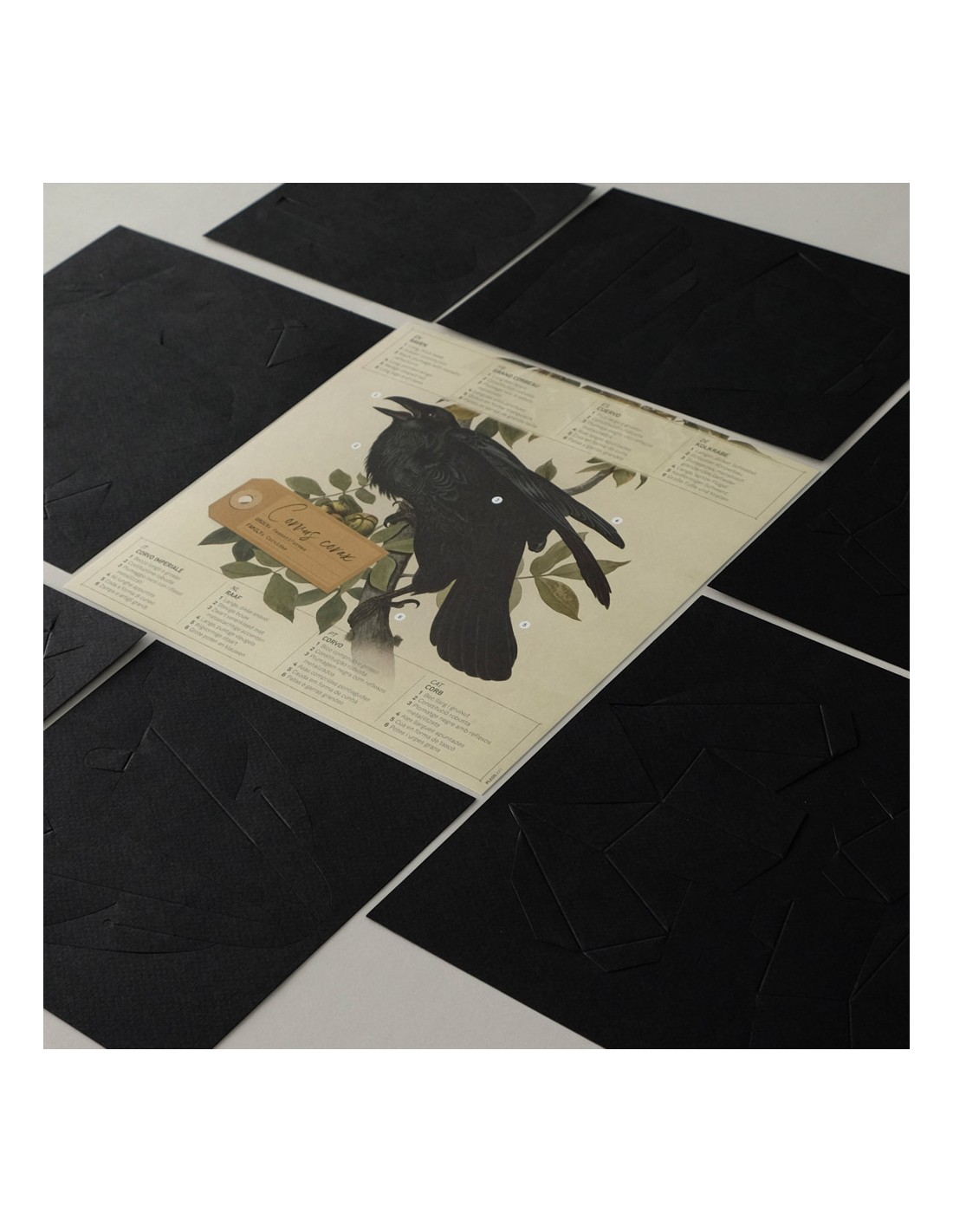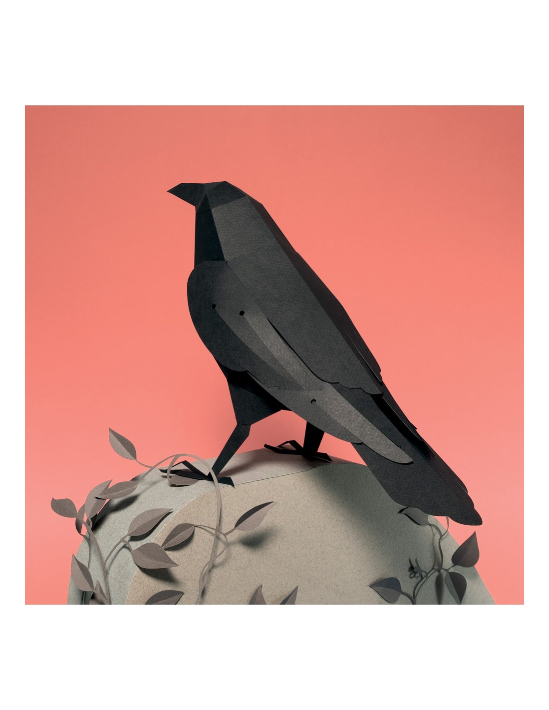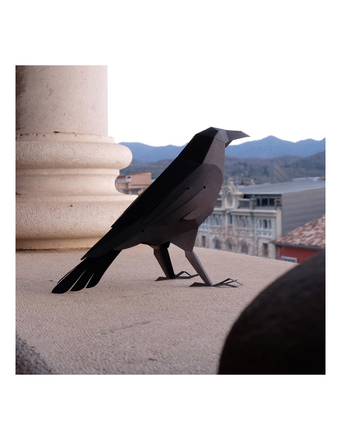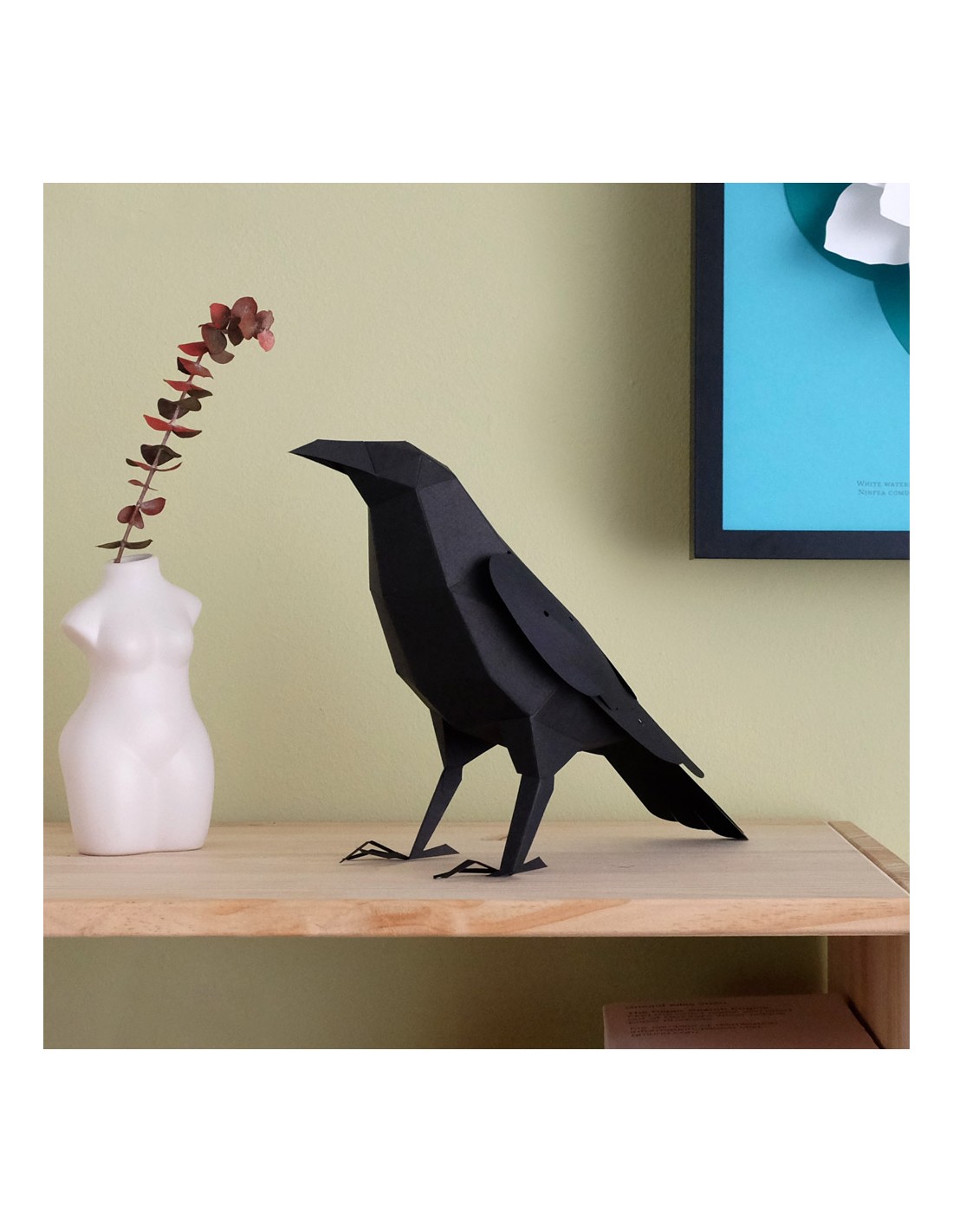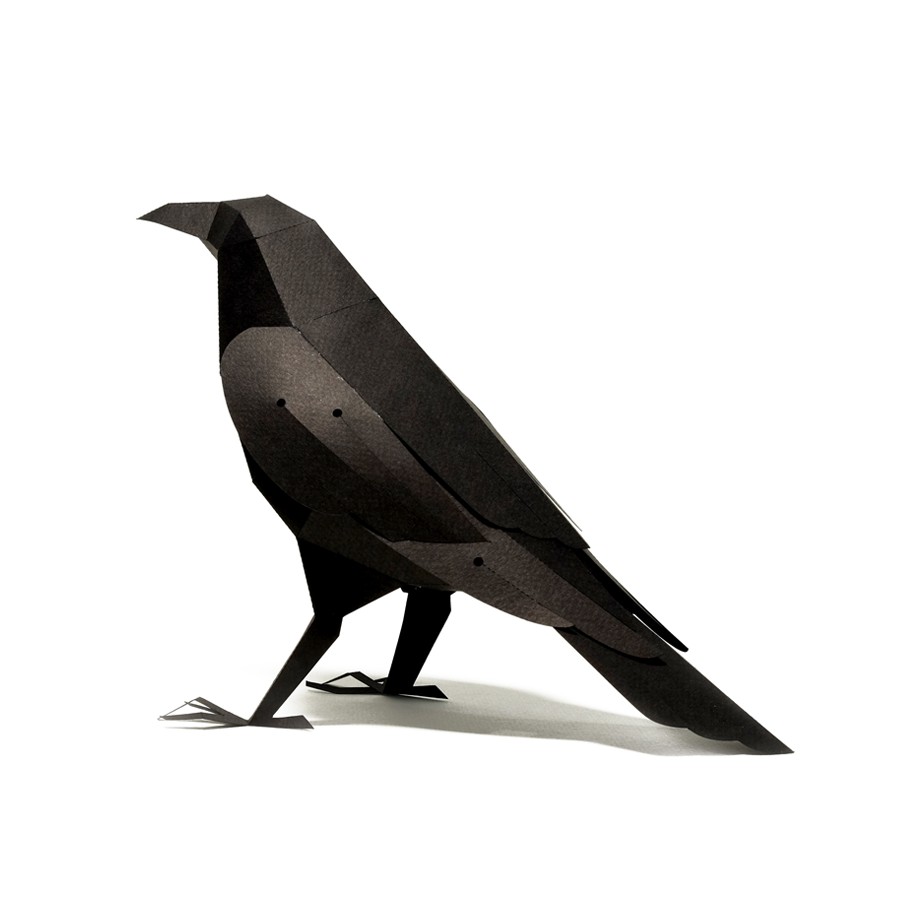 El cuervo es un pájaro en el que se mezclan misticismo e inteligencia a partes iguales. Se trata de una de las figuras más grandes de la colección y está constituida íntegramente por cartulinas de color negro. Imposible ser más elegante, ¿no te parece?