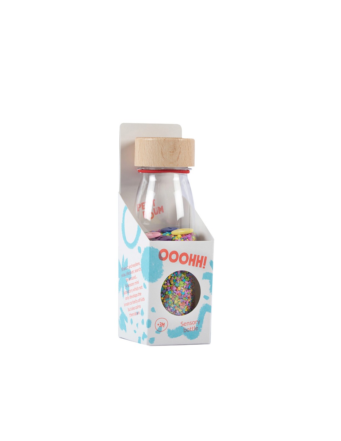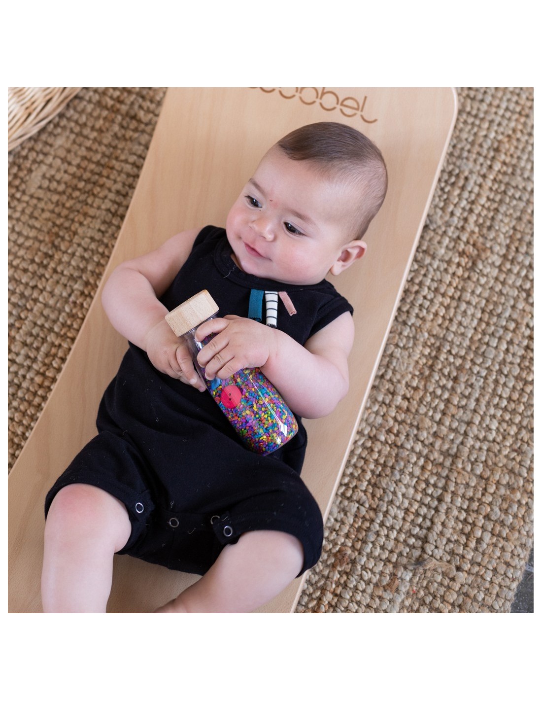 Mirar, agitar… ¡y escuchar! Tan simple y tan efectivo como eso. Los pequeños objetos de la serie SOUND BOTTLE son un auténtico espectáculo para lxs más peques. A la identificación visual de las piezas contenidas se une la estimulación auditiva, especialmente importante en el primer año de vida de los bebés.