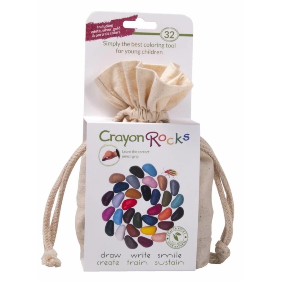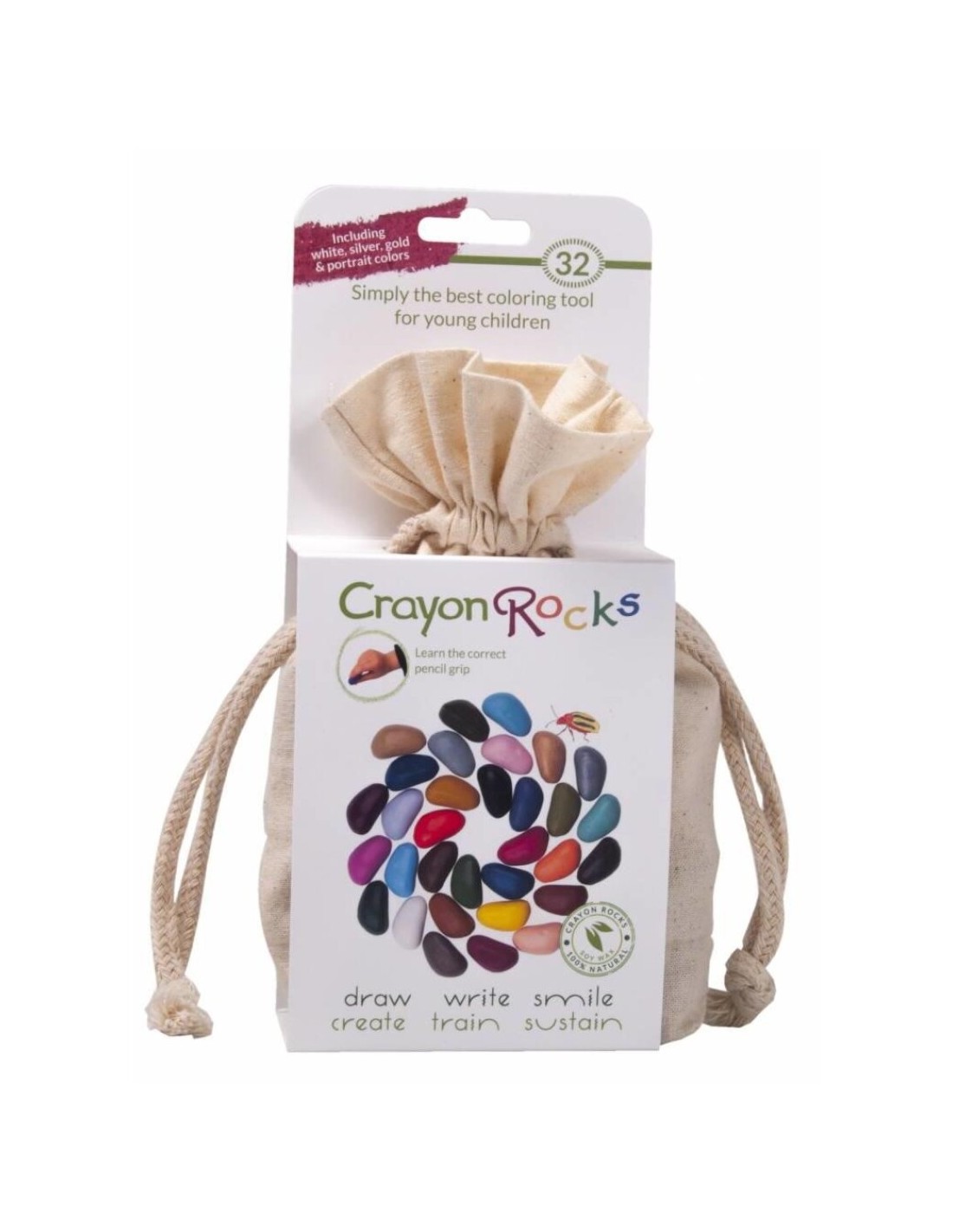 Crayon Rocks son lápices de colores a base de cera de soja natural cultivada en EE.UU. y coloreados con pigmentos minerales naturales.