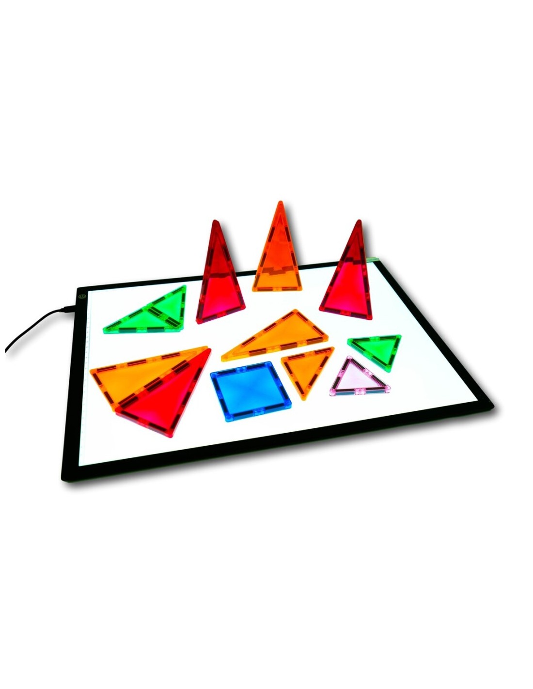 La tableta de luz de LED es extraplana y trabaja a baja temperatura. Su reducido peso la hace muy ligera y permite transportarla muy fácilmente e incluso utilizarla con baterías tipo Power Bank sin necesidad de conectarla a la corriente. Es ideal para todo tipo de creatividad, desde el juego con materiales translúcidos y superposición de colores hasta como herramienta para el calco o visionado. Su dimmer incorporado permite ajustar la intensidad de luz de forma precisa según sus necesidades y cuidar así la vista.