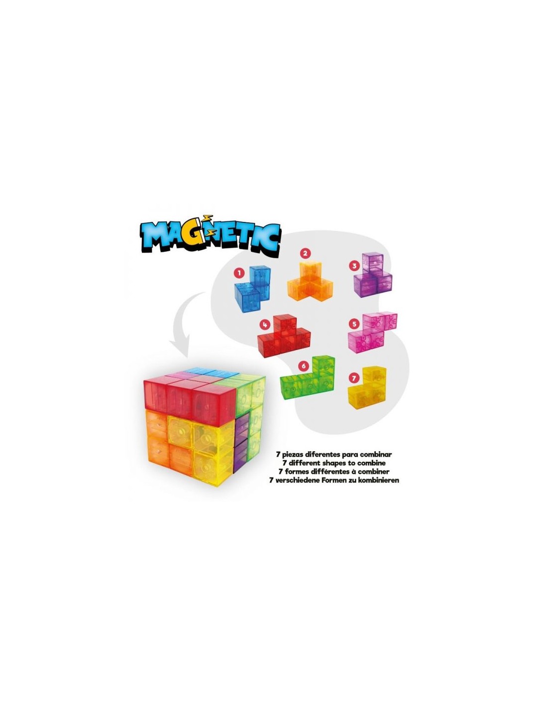Magic Magnetic Cube es un juego de razonamiento, agudeza mental y concentración, toda una diversión para amantes de los retos. Cada Magic Cube contiene siete piezas 3D magnéticas con una estructura distinta cada una de ellas y tarjetas con 108 retos para construir.