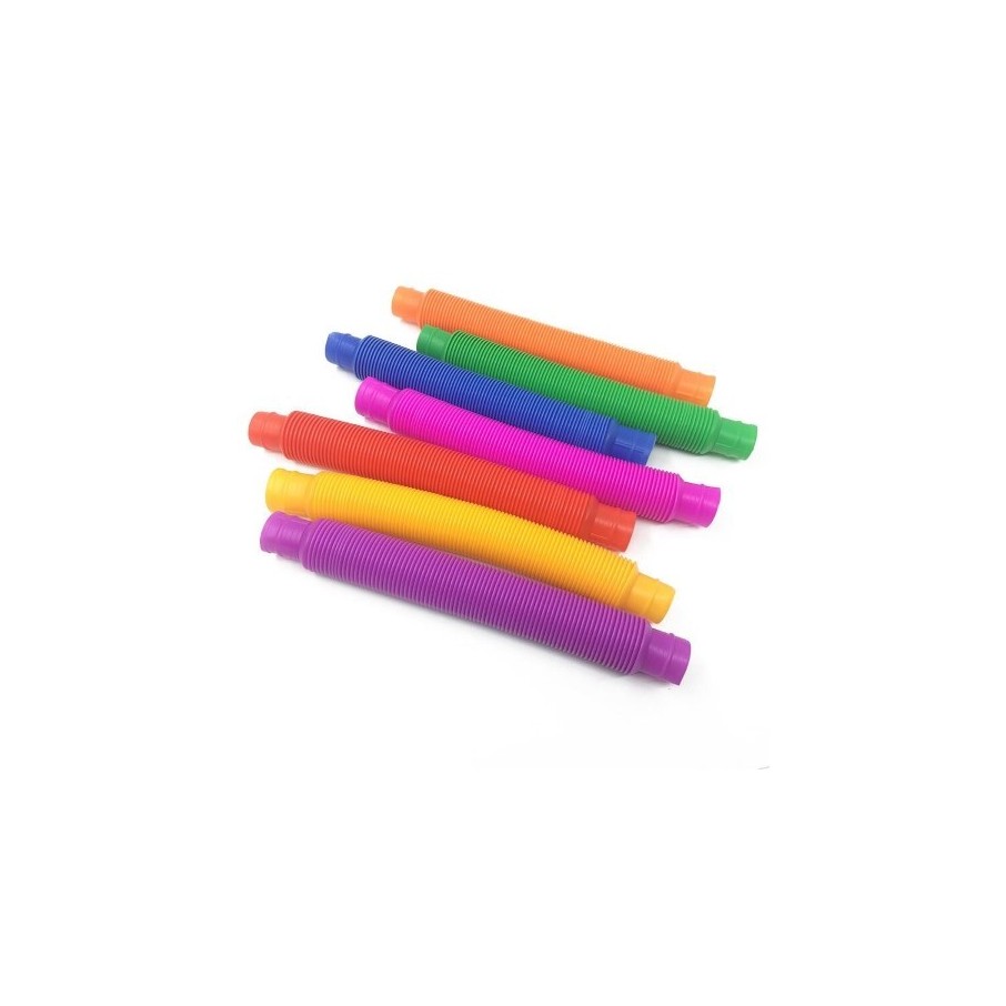 Incluye 8 tubos expandibles de 21 hasta 70 cm cada uno, en 8 colores distintos.