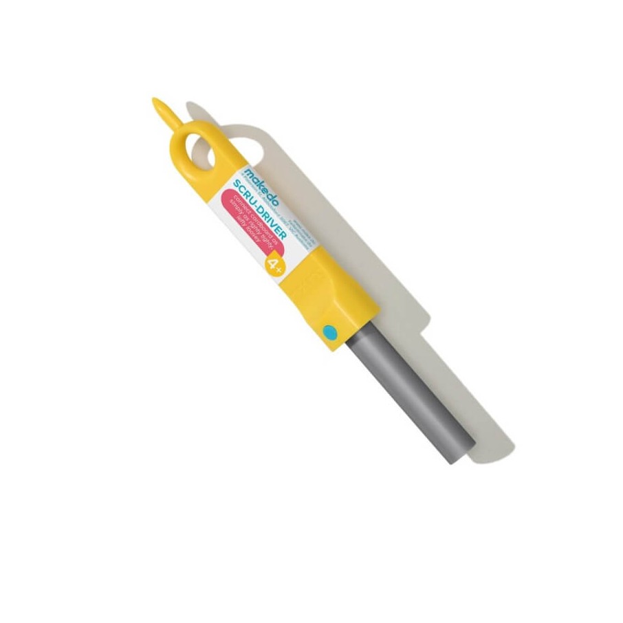 Scru-driver de Makedo es un destornillador para que niñas y niños a partir de 4 años conecten trozos de cartón entre sí y creen sus propias construcciones.