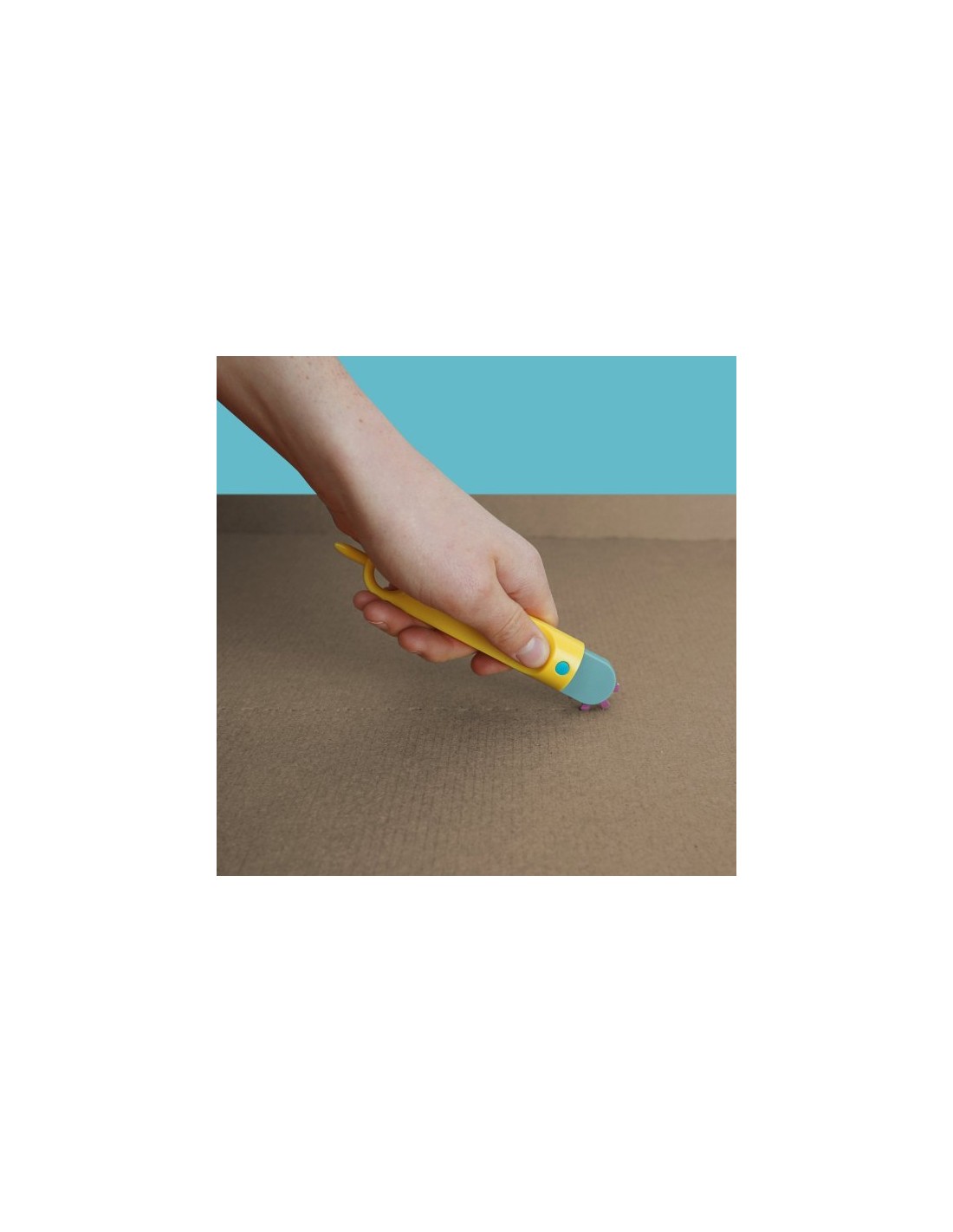 Esta troqueladora está pensada para que niñas y niños puedan agarrarla y manipularla de manera sencilla. Su diseño permite precisamente que no sólo sea fácil hacer líneas rectas, sino que también puedan experimentar con formas curvas o más complejas.