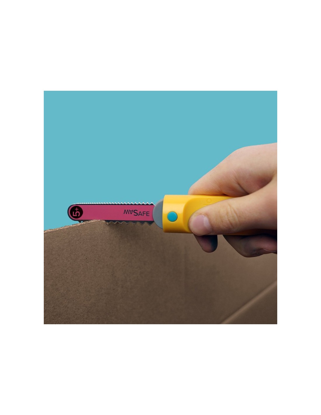 Por eso nos encanta la sierra Safe Saw Junior. No tiene cuchilla, puede manipularse con una sola mano y está diseñada específicamente para cortar cartón, por lo que no necesitarán ejercer tanta presión como con las tijeras.