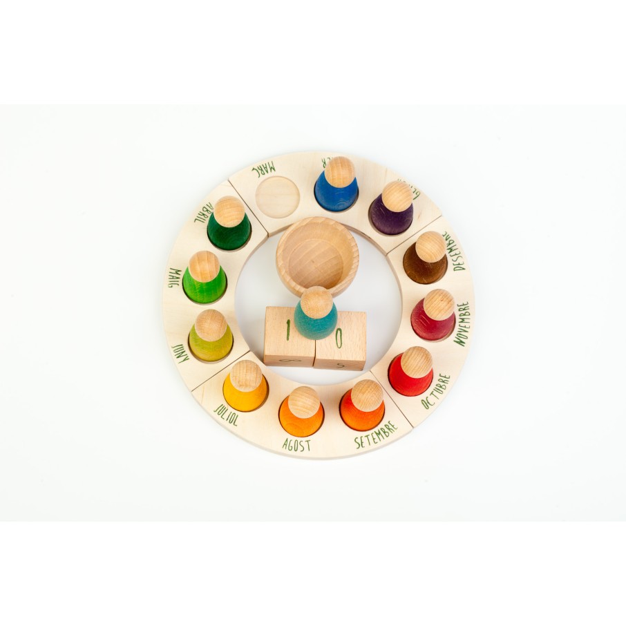 Calendario manipulativo y activo anual que permite al niño tocar el año y comprender el paso del tiempo a través de la experiencia.