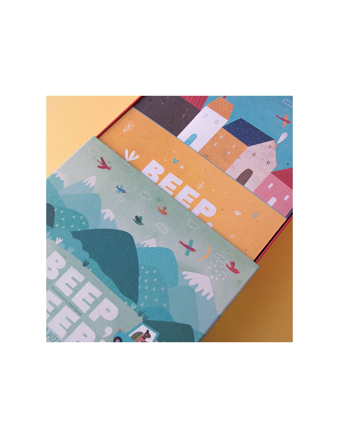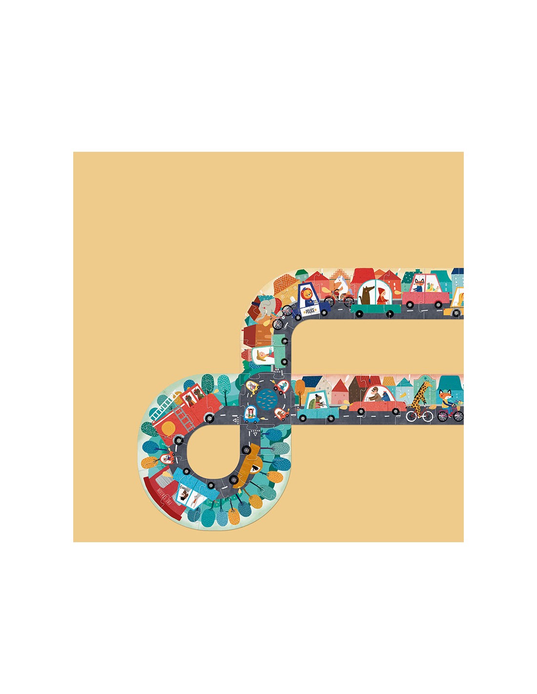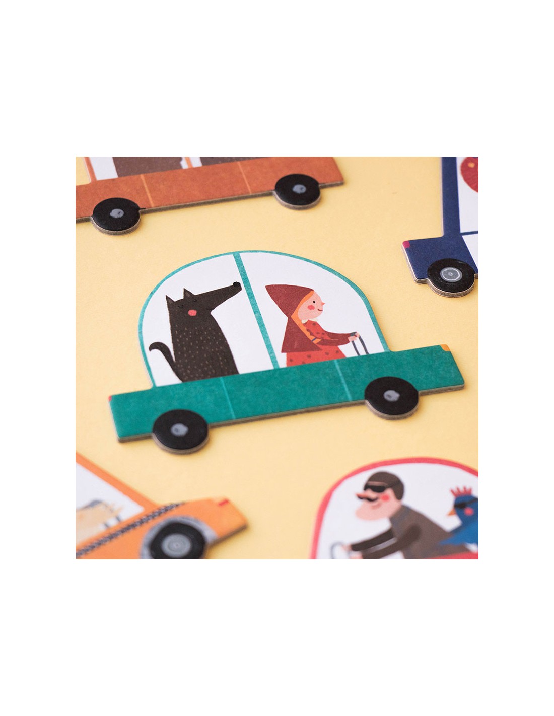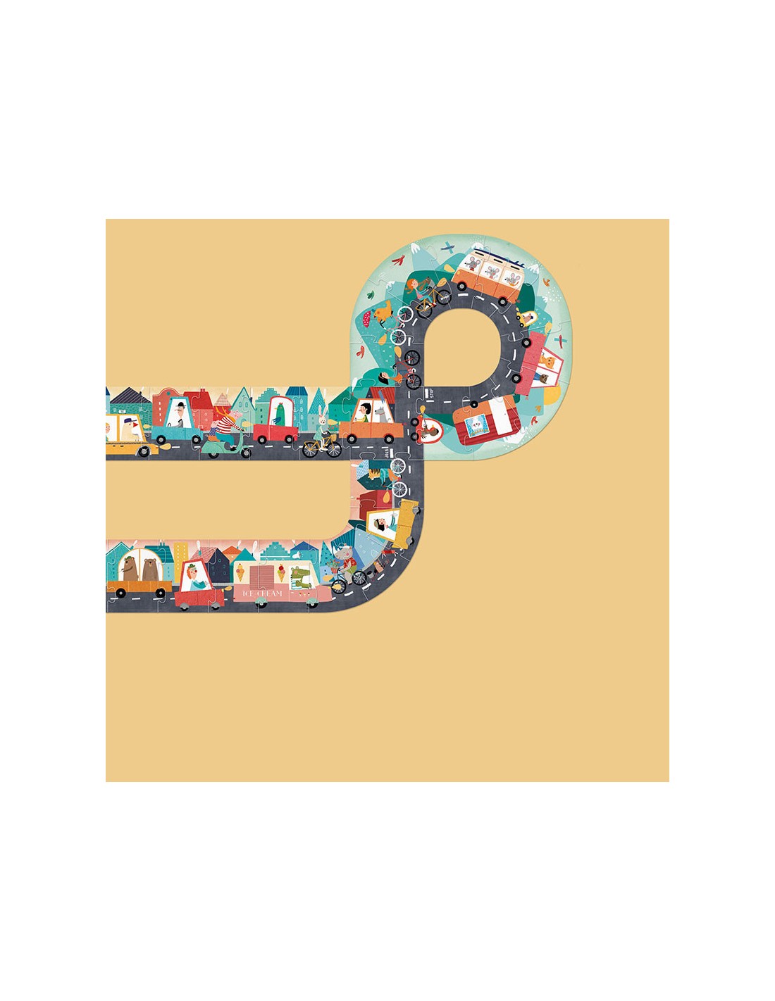Conductores precavidos, ciclistas felices y camiones cargados de helados. Que no se acabe nunca la ruta! Una vez armado el puzzle, un juego de observación. Quién será el primero en encontrar a los 10 conductores?