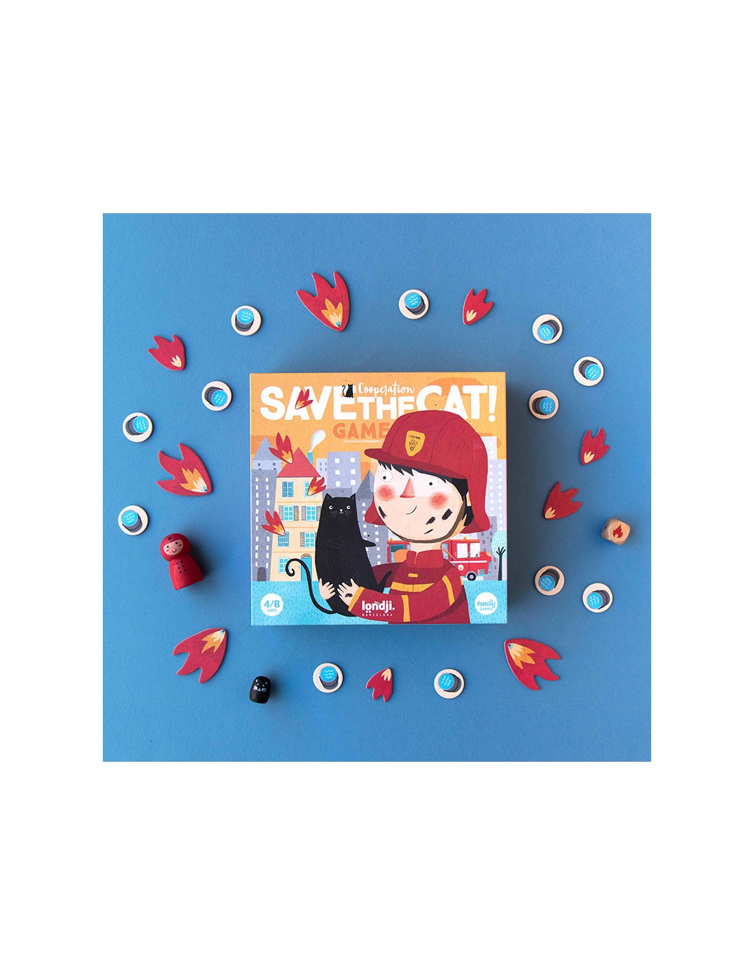 Un juego de mesa cooperativo y familiar en el que ayudaremos al bombero a salvar al gato atrapado entre las llamas. Fabricado con mucho cariño en Barcelona.