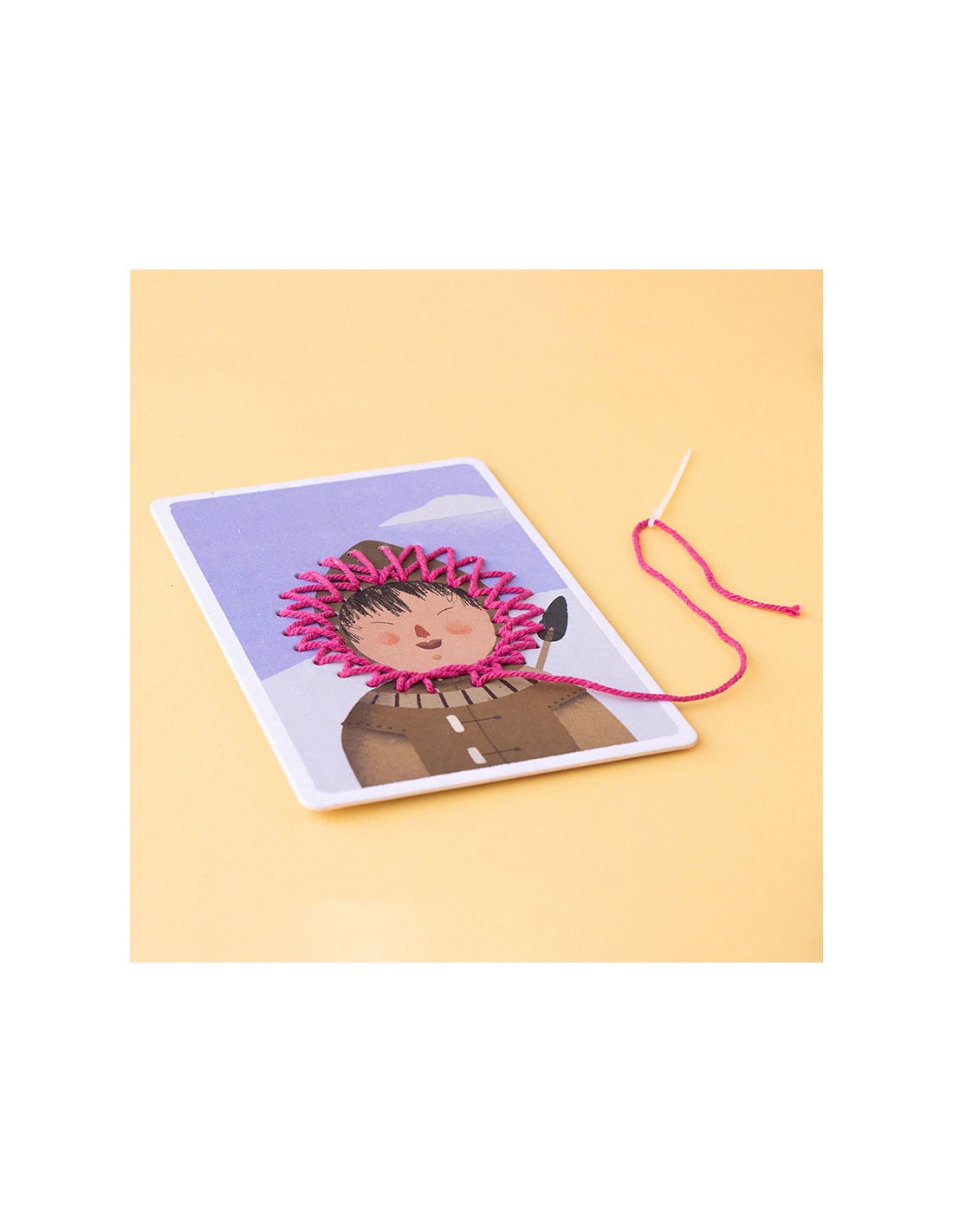 Un juego de bordado con todo lo necesario para aprender a coser: lana de colores, agujas que no pinchan y 8 plantillas de cartón. Para niños y niñas desde 4 años.