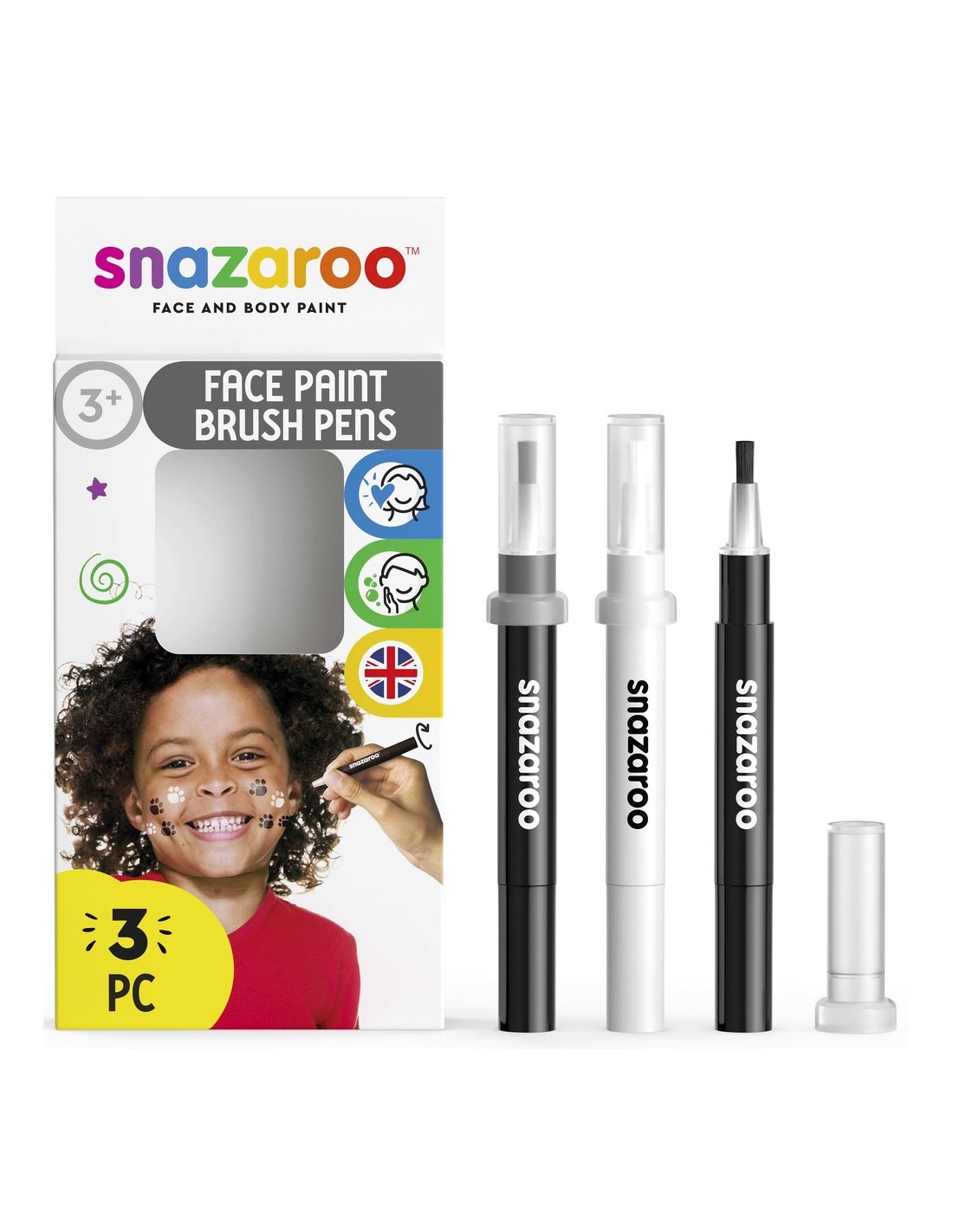 El Pack de Rotuladores de Maquillaje Monocromo de Snazaroo incluye dos rotuladores negros y uno blanco, los colores de pintura facial más populares y versátiles de toda la gama Snazaroo. Los Rotuladores de Maquillaje de Snazaroo hacen que pintar caras sea fácil y rápido, sin necesidad de usar pinceles separados ni agua, para poder pintar de manera ordenada y limpia sobre la marcha.