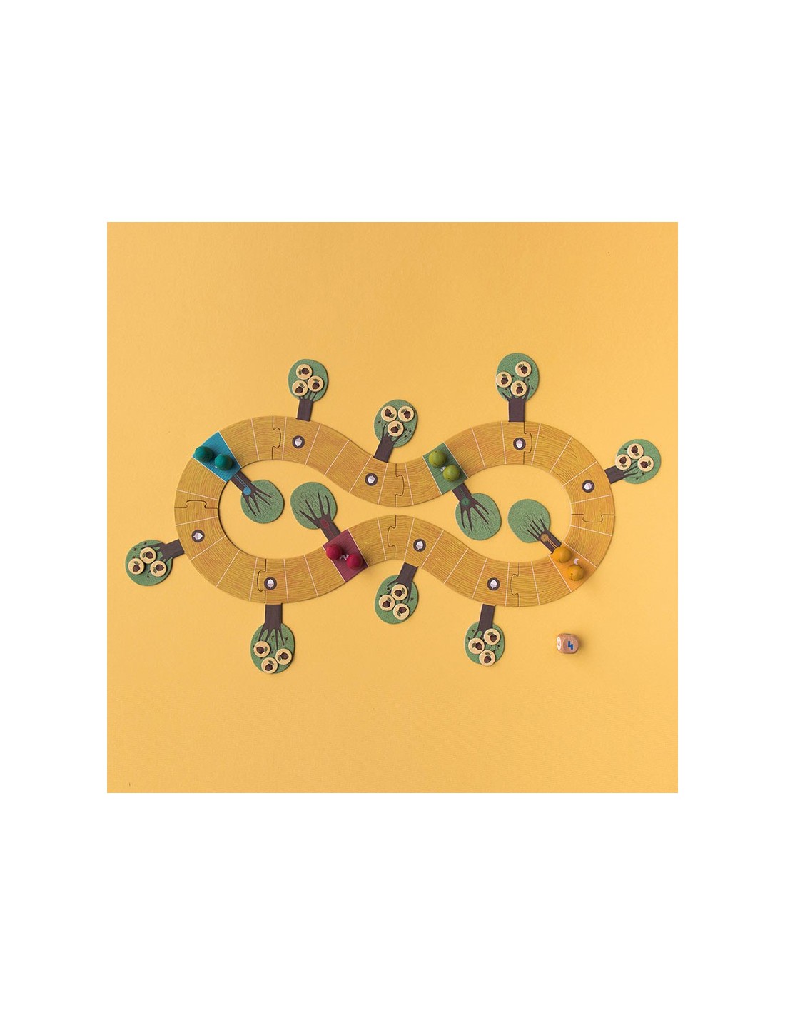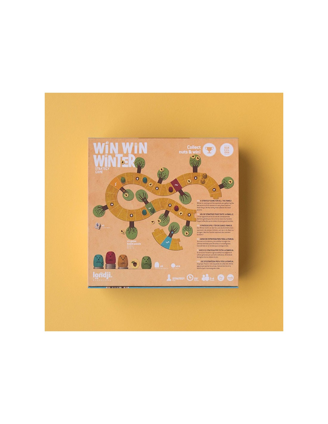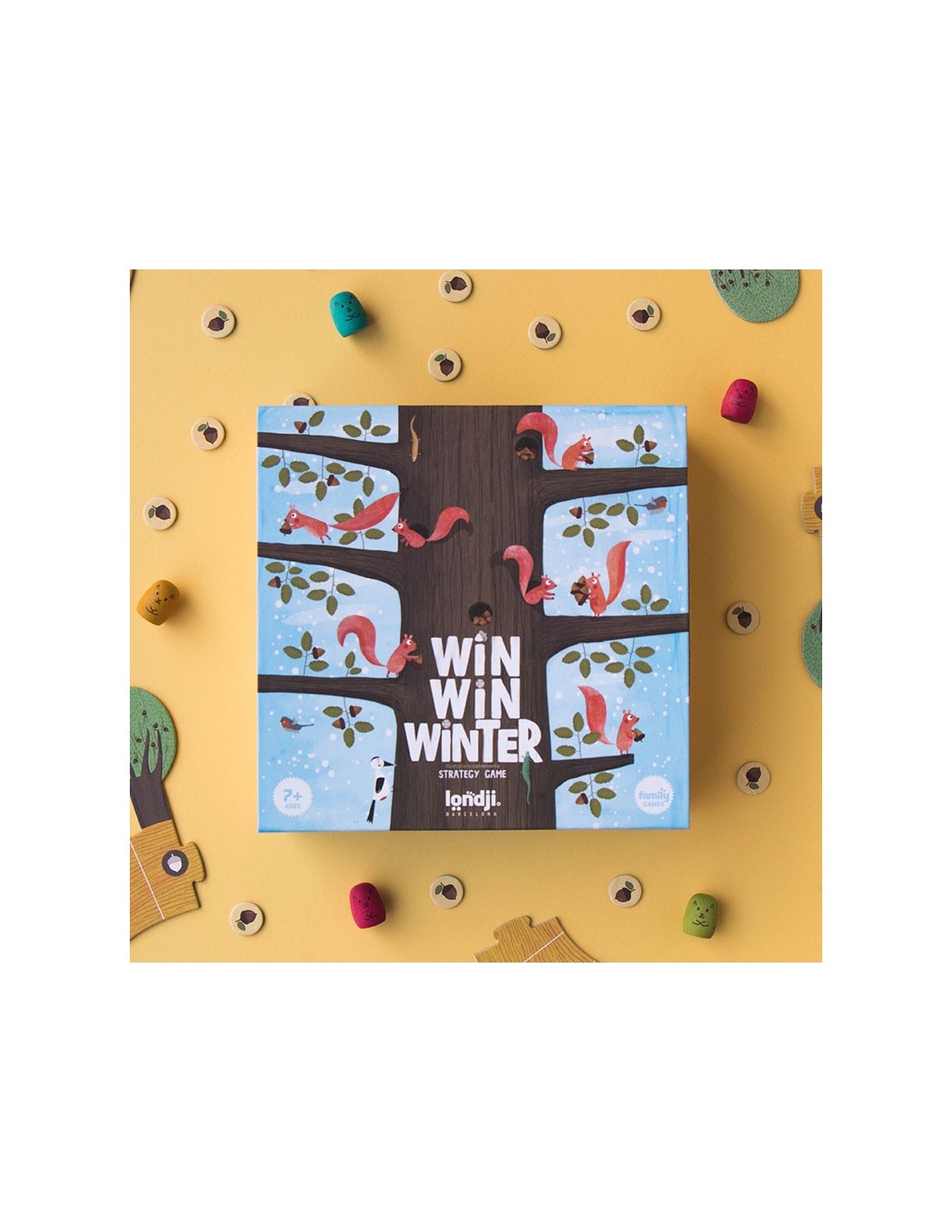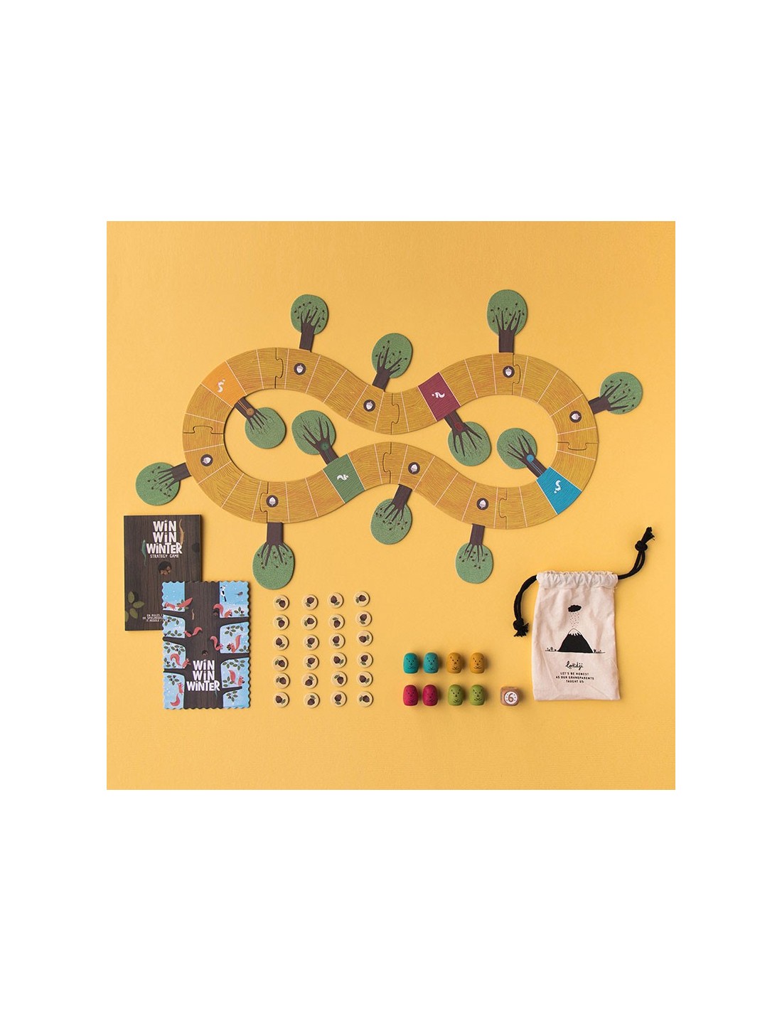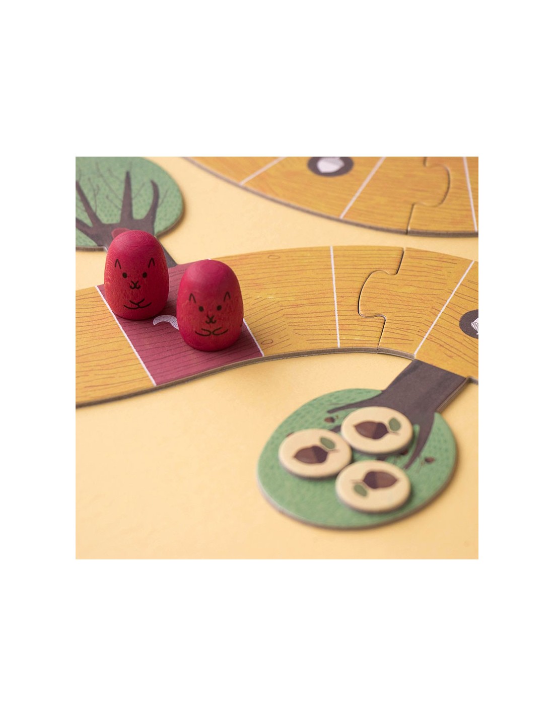 Un juego de recorrido y de estrategia, la familia de ardillas que consiga llevar más bellotas a su madriguera será la ganadora. Un juego sostenible y de proximidad.