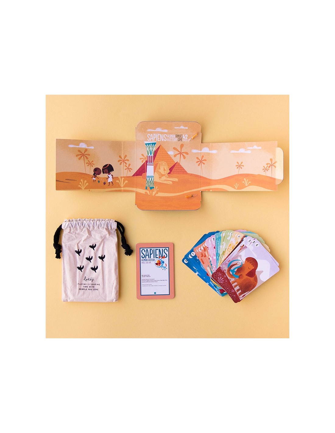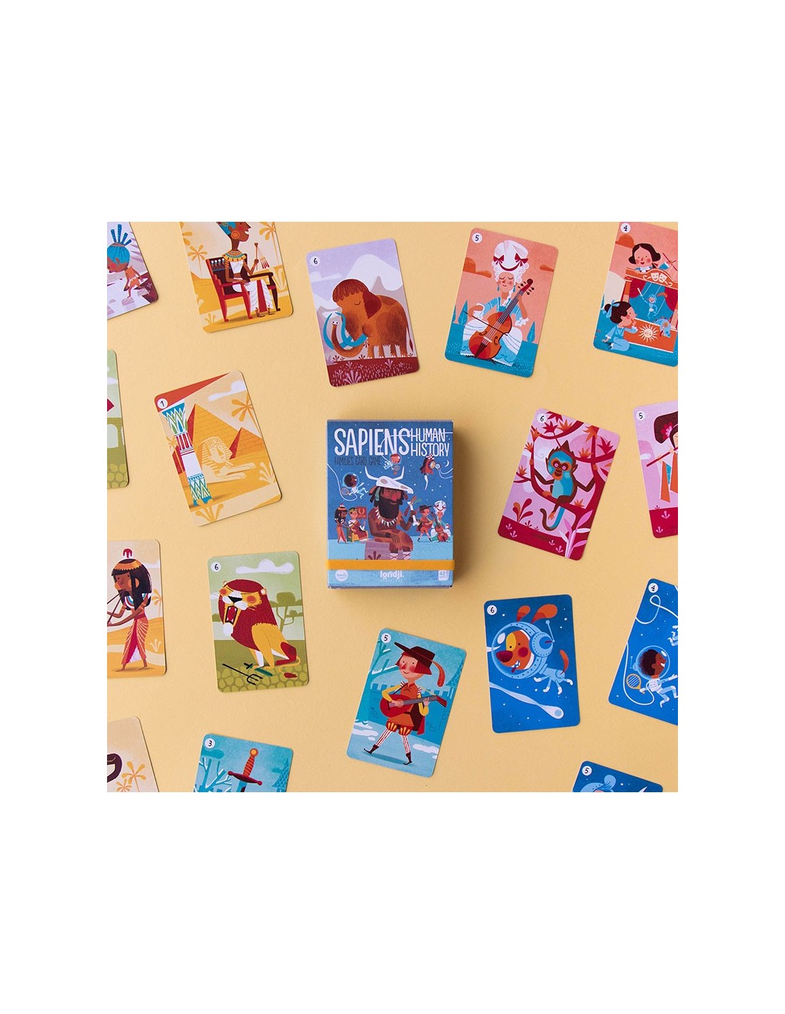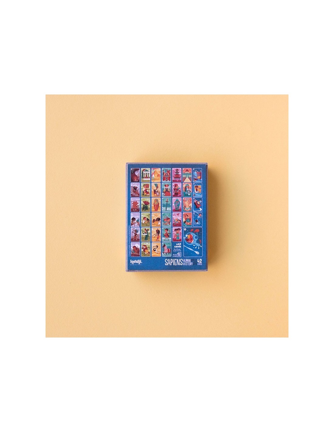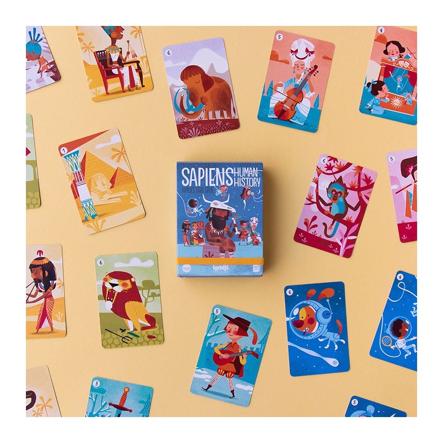Por un rato tendrás una familia muy peculiar: un padre de la prehistoria, una mascota del antiguo Egipto, unos hermanos de la Edad Media, accesorios de la China Imperial, músicos del Siglo de las Luces e incluso alguna sorpresa del futuro! Reúnelos todos con este juego de cartas de familias que hace un recorrido por la historia.
