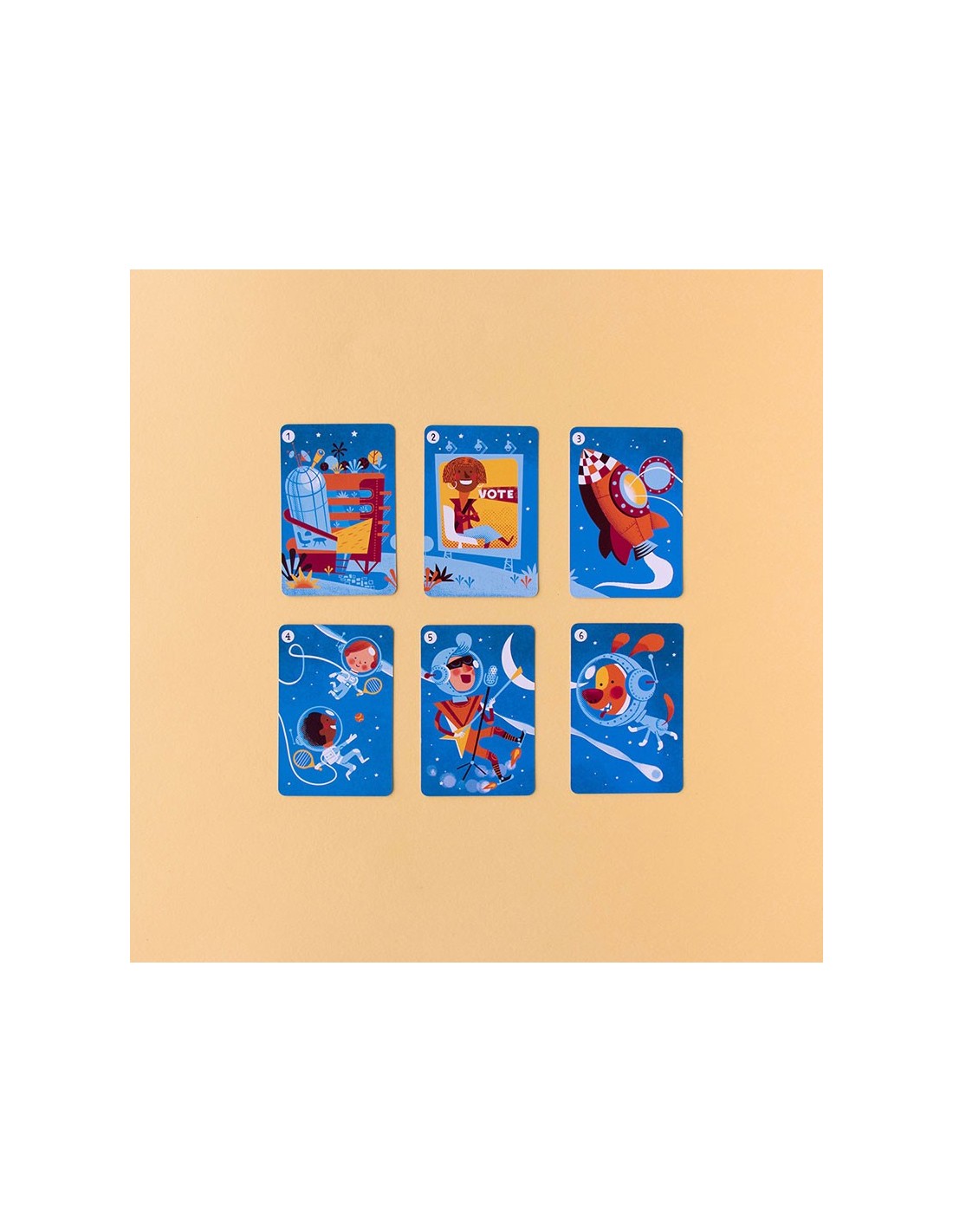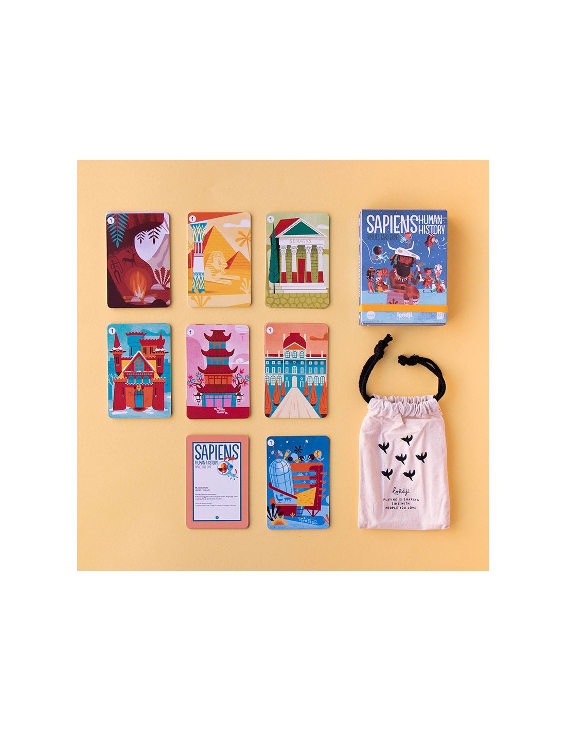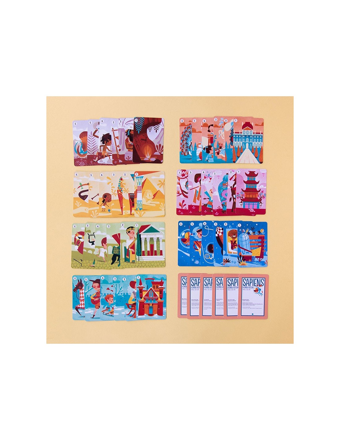 Por un rato tendrás una familia muy peculiar: un padre de la prehistoria, una mascota del antiguo Egipto, unos hermanos de la Edad Media, accesorios de la China Imperial, músicos del Siglo de las Luces e incluso alguna sorpresa del futuro! Reúnelos todos con este juego de cartas de familias que hace un recorrido por la historia.