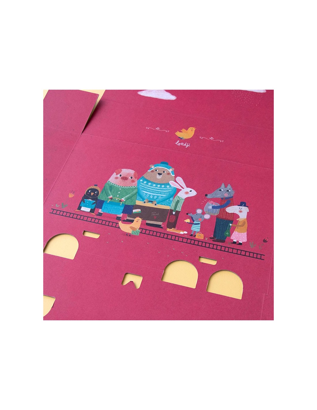 ¡Pasajeros, al tren! Una locomotora y unos vagones muy especiales con unos viajeros muy peculiares: osos, cerditos, conejos, lobos, pingüinos y muchos otros animales que te harán disfrutar de un viaje de lo más divertido. ¡Chu, chu! ¡Te esperamos!