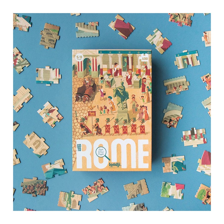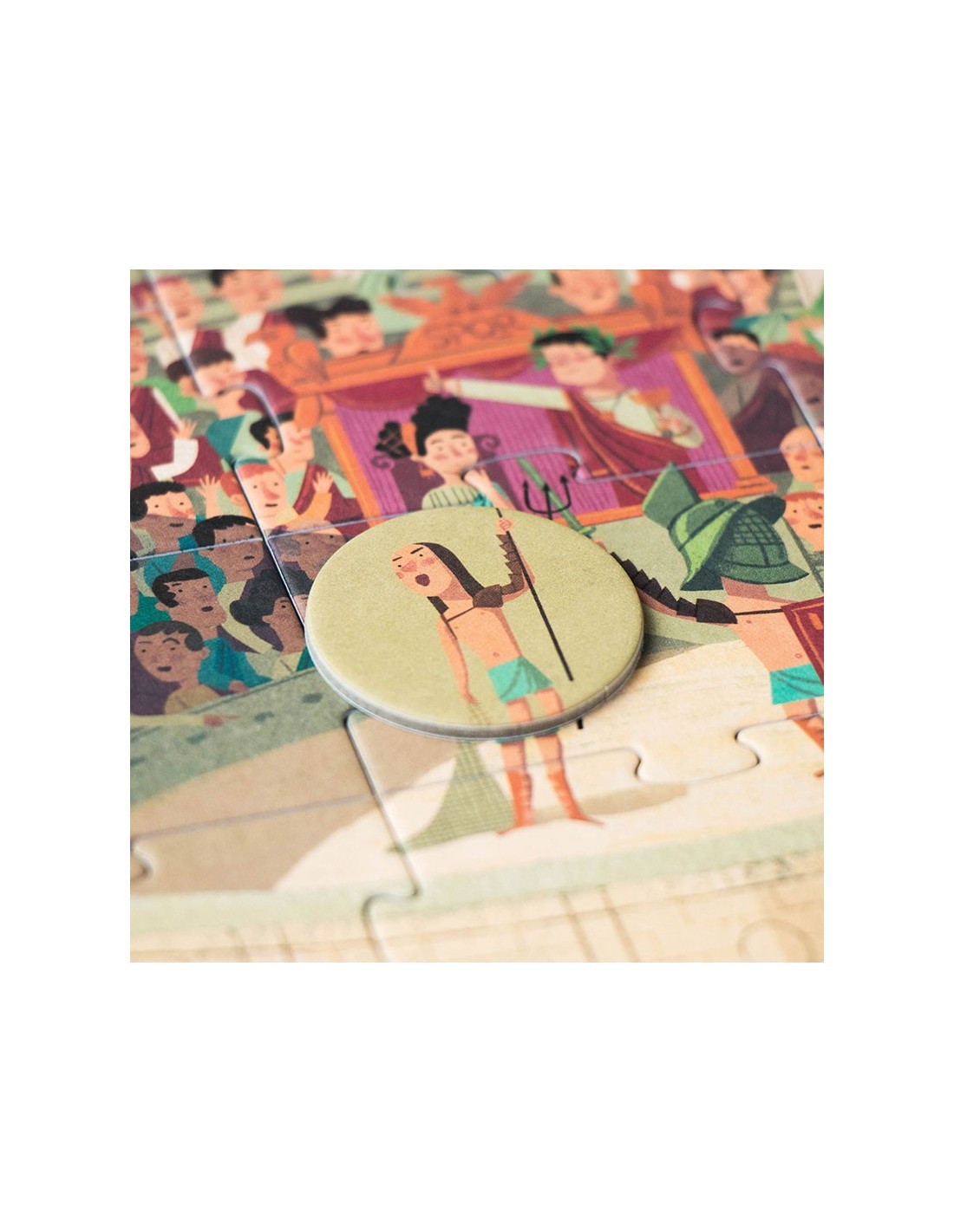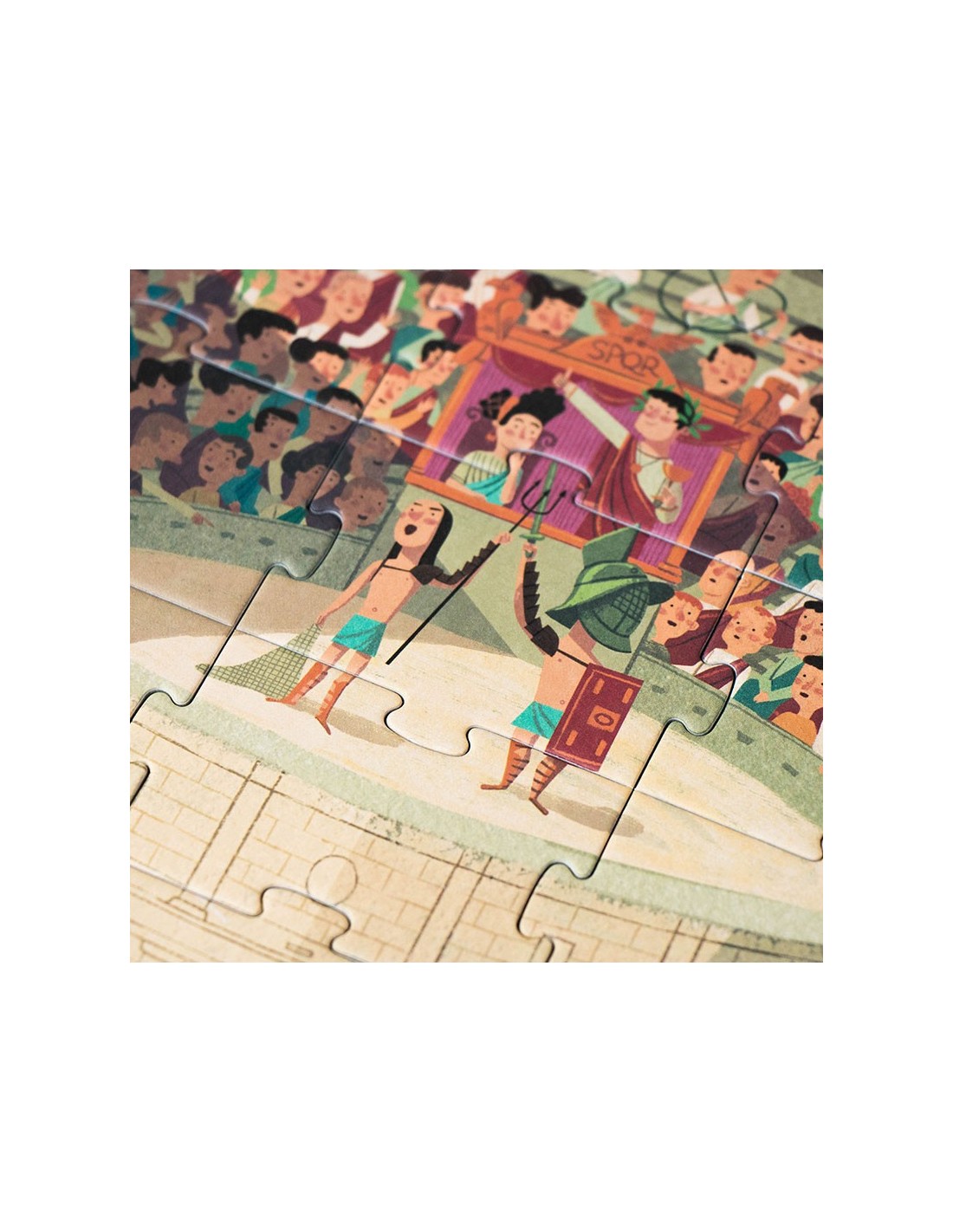Un puzzle de 100 piezas que viaja hasta los tiempos del Imperio Romano. Gladiadores, emperadores y esclavos en la Roma de hace 2000 años. Un juguete didáctico.