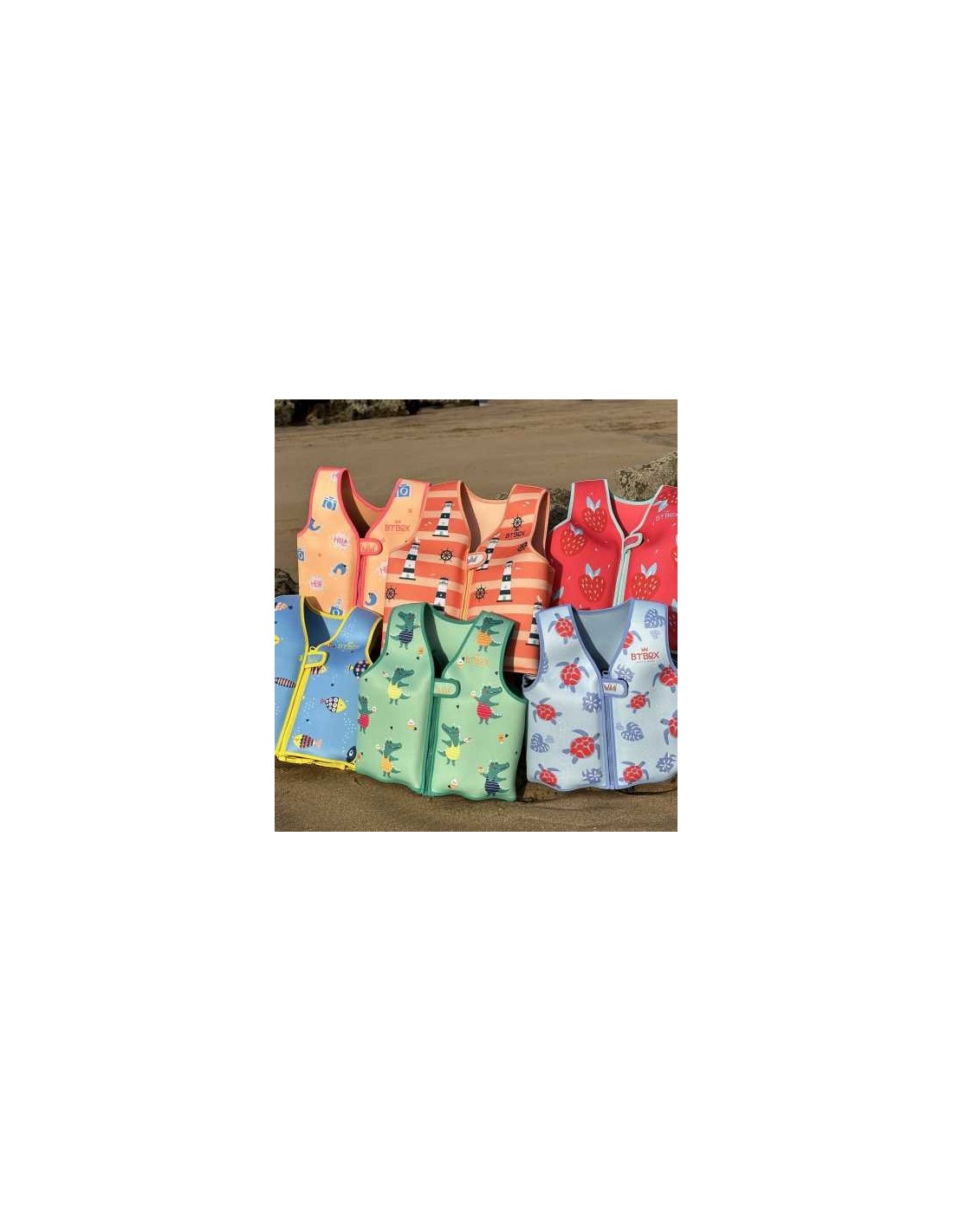El chaleco flotador de BTBOX BEBES está fabricado en neopreno de 5mm muy agradable al tacto y con unas costuras que no molestan ni dañan la piel del niño/a.